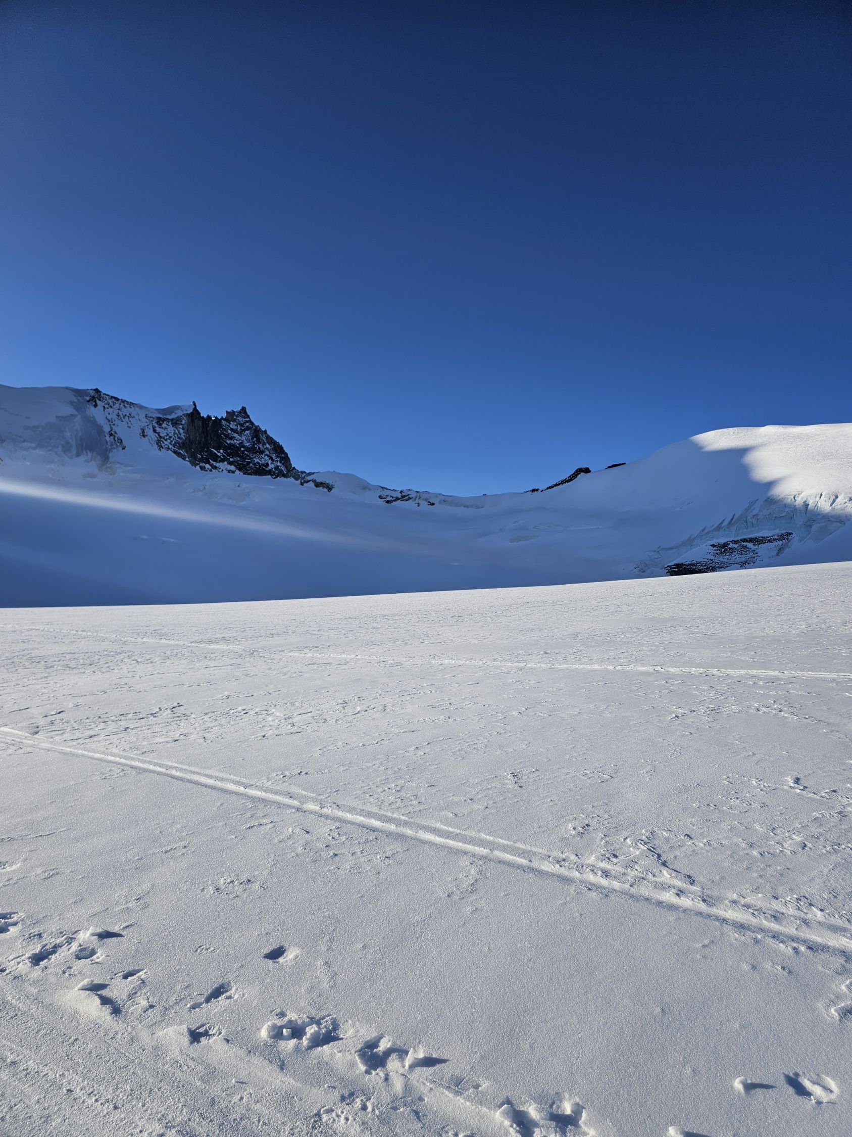 Sehr viele Leute unterwegs, Hütte war 3/4 gebucht. Gebiet ist nicht so gut eingeschneit. Auf dem Gletscher teilweise schon blank und mind. 3 Spalten, welche sich beginnen zu öffnen. Aufstieg eher hart, Harscheisen von Vorteil ab 1. Steilstuffe. Die Biese ging den ganzen Tag durchegend, erstaunlicherweise war es am Skidepot Windstill. Abfahrt ca. 11.15 Uhr, Sulz gibts noch keinen auf dieser Höhe und schon gar nicht bei Biese. Es war aber erstaunlich gut zu fahren. Oben sehr ausgefahren, wie Buckelpiste. Weiter unten sehr Pistenähnlich, es rumpelt einfach. ?