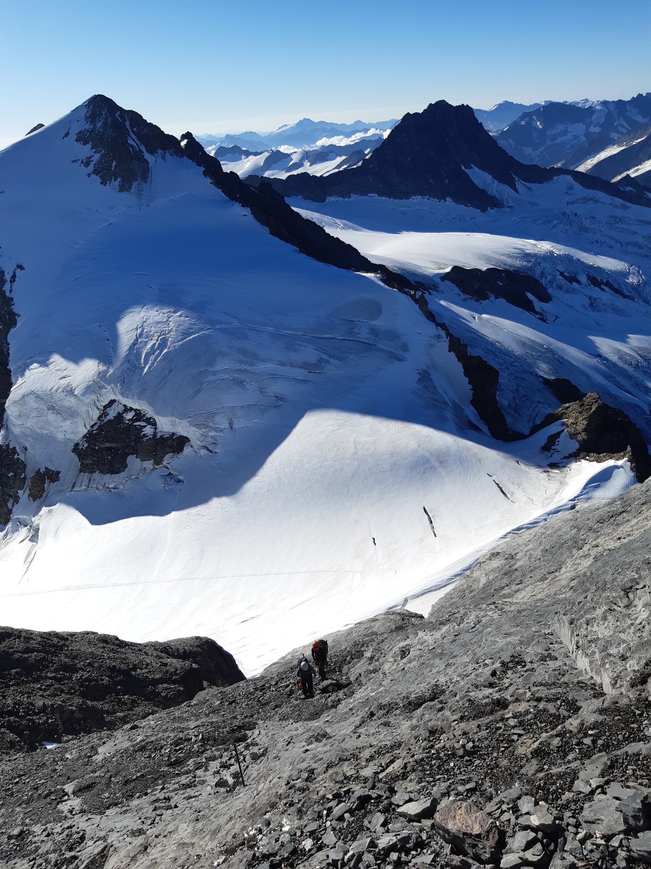 Der Abstieg erfolgte über die Aufstiegsroute. Der Abstieg erfordert volle Aufmerksamkeit und darf nicht unterschätzt werden.