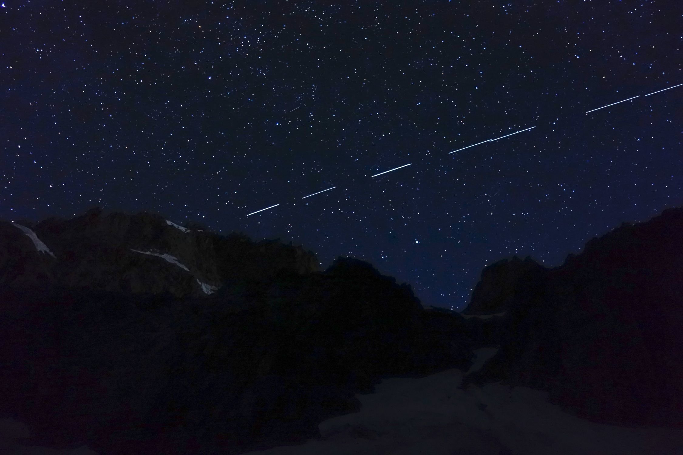 Um 4:58 flog die neue SpaceX Starlink-9/-10 Satellitenflotte vorbei. Als ob jemand mit Sternschnuppen werfen würde... Spektakuläres Himmelsschauspiel, katastrophale Lichtverschmutzung. Die sehr hellen Satelliten sind am frühen Morgen in nördlichen Himmel zu sehen, vgl. Photo unten. Sichtbarkeit prüfen hier: https://findstarlink.com/