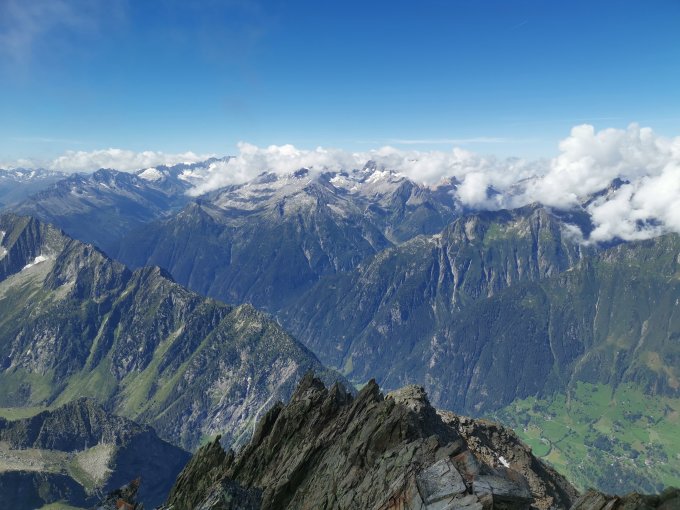 Leider war die Aussicht durch Wolkenfetzen getrübt. Trotzdem imposanter Tiefblick ins Tal.