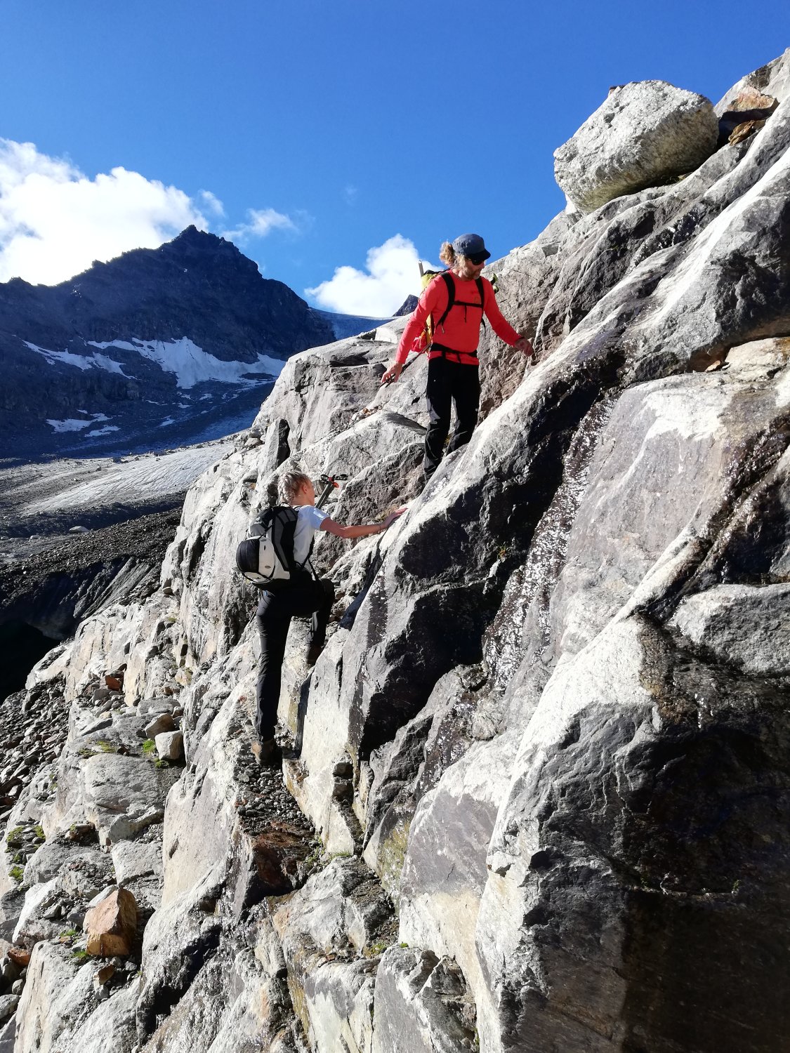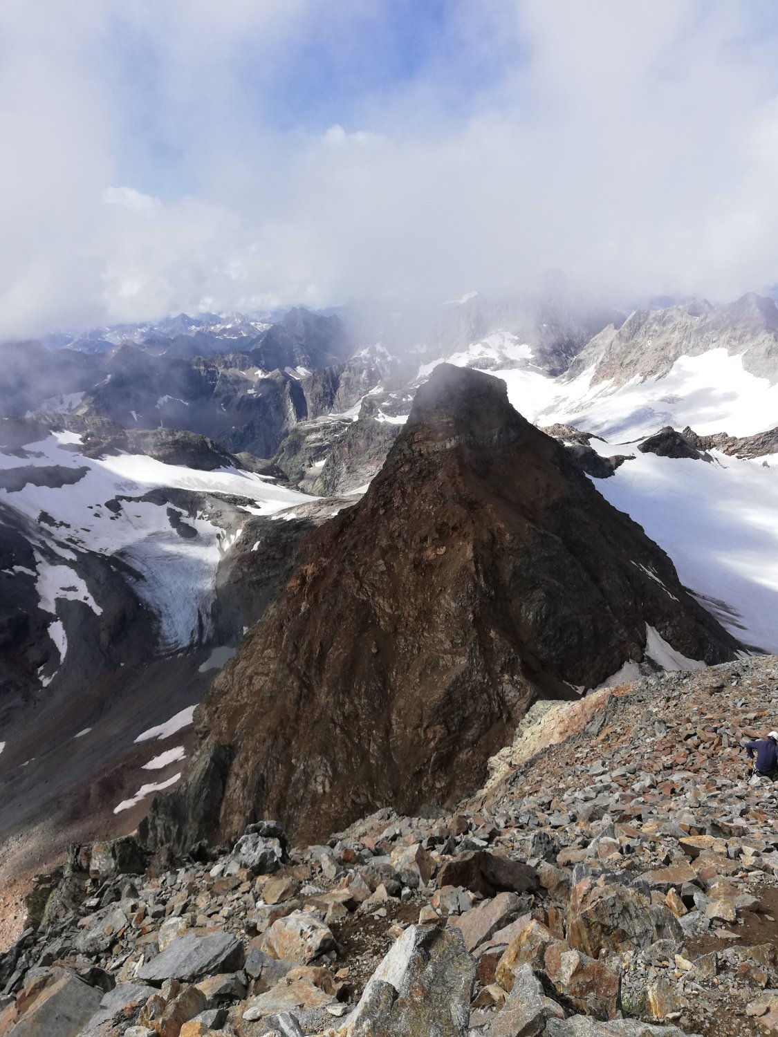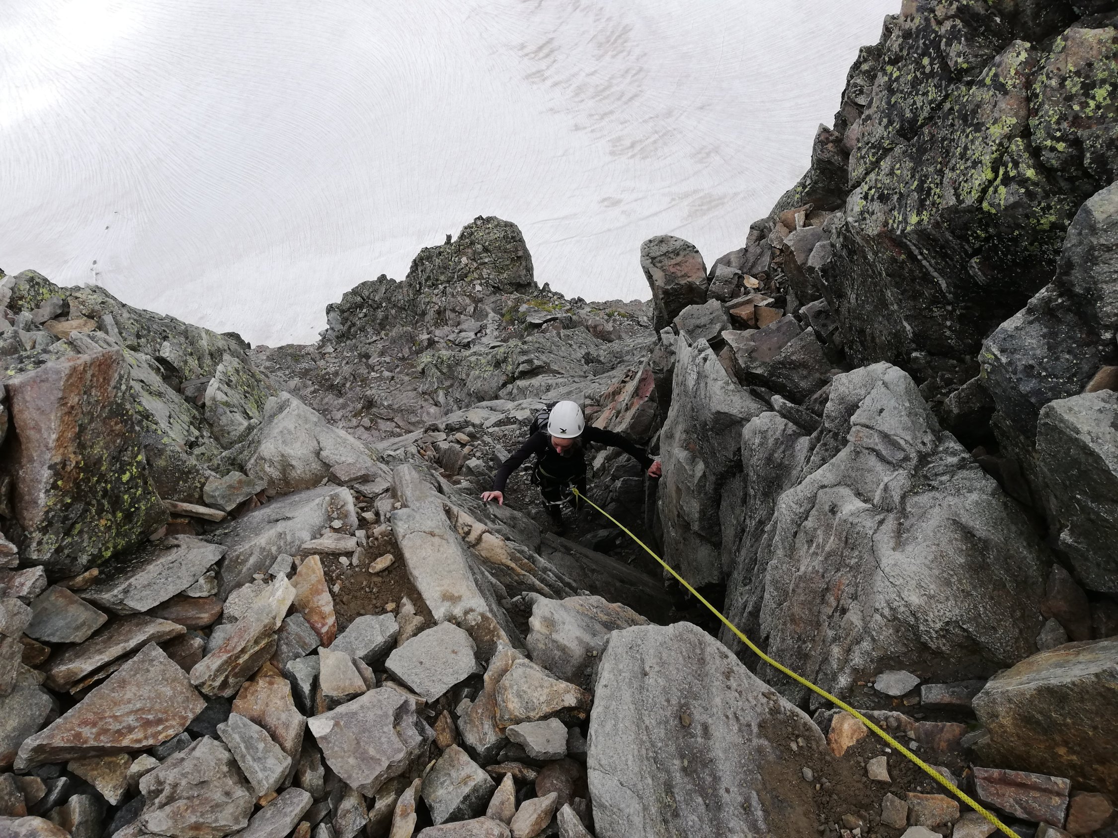 Der Berg ist gesperrt und unter Beobachtung. Das meiste Geröll geht in die Buin Lücke. Einiges aber auch eben in Richtung da wo man die Steigeisen deponiert. An dieser Stelle auf keinen Fall verweilen!