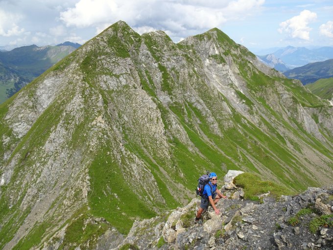 Wir haben die hier beschriebene Route über den Südgrat zu P. 2.580 und von dort weiter entlang des Ostgrats über den Heidelspitz zum Heidelpass fortgesetzt (T4, I, Trittspuren). Vom Pass dann Abstieg auf dem Wanderweg über die Alp Valtüsch und die Wasserfälle von Batöni zurück nach Weisstannen.