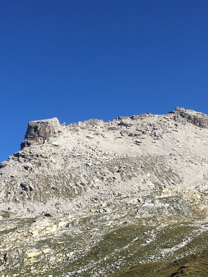 Start Parkplatz oberhalb La Veduta 8 Uhr, 11 Grad, windstill. Aufstieg via Nordostgrat. Wir sind alles nordwärts auf nicht markiertem Wanderweg an Punkt 2598 vorbei und weiter zu Punkt 2825. Nun in einem Bogen zum Sattel P. 2865. Jetzt alles dem Nordostgrat steil hinauf, teilweise Wegspuren und zahlreiche Steinmännchen weisen den Weg zum Gipfel (T4-). Abstieg wieder in Sattel P. 2865 und dann ostwärts zum Weglein unterhalb Fuorcla Alva. Weiter im schönen Tälchen unterhalb Muot Cotschen und weiter zum Parkplatz.