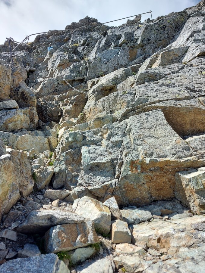 Die Route ist ab P. 2775m sehr gut markiert und ausgerüstet, auch im Nebel wäre die Route sehr gut zu finden. Dies verdient nicht nur Anerkennung sondern auch eine Erwähnung, weil in anderen Kantonen so gut markierte Routen und Einrichtungen auf das angeblich vorschriftsgemässe Minimum zurück gebaut werden: