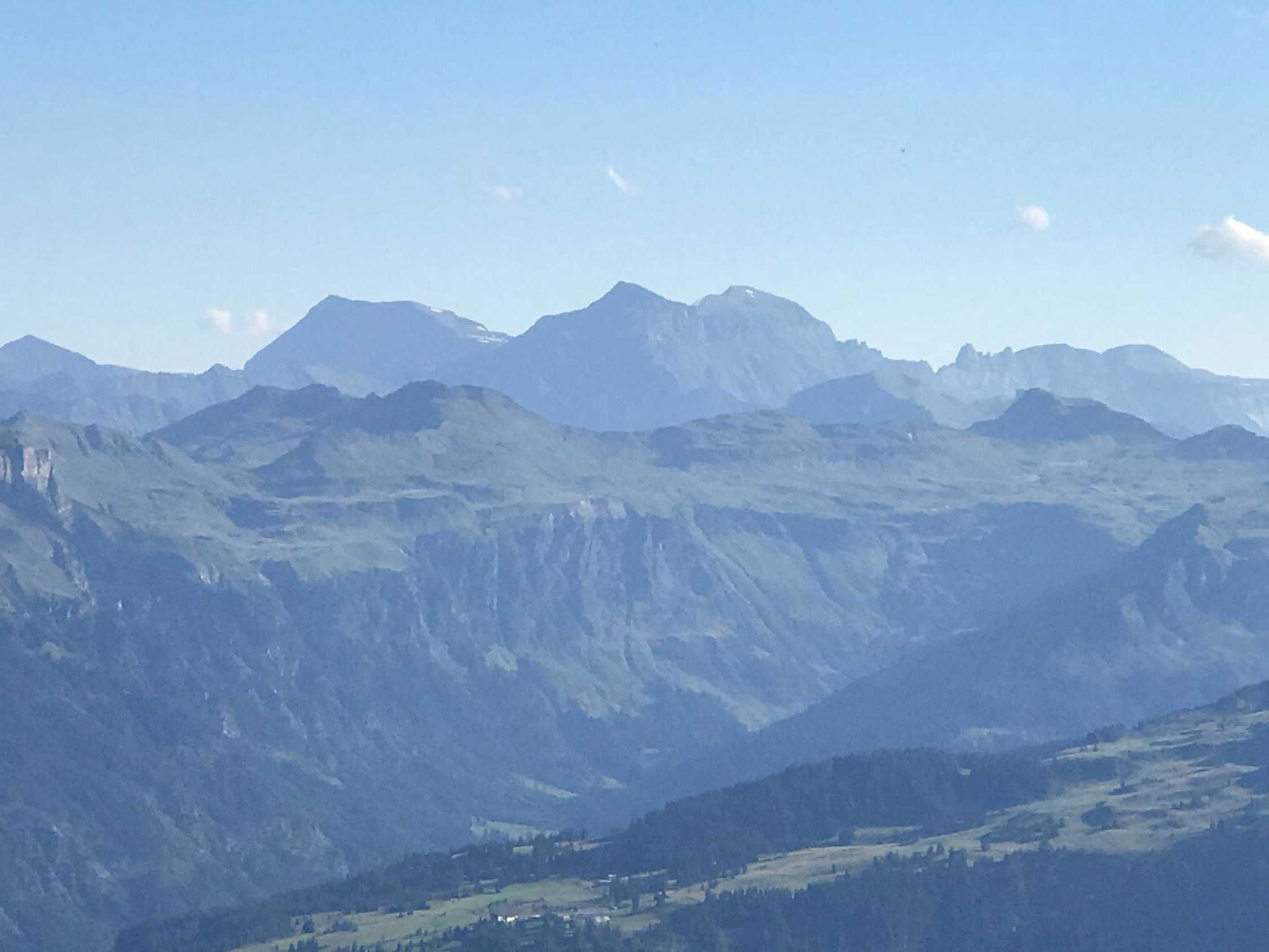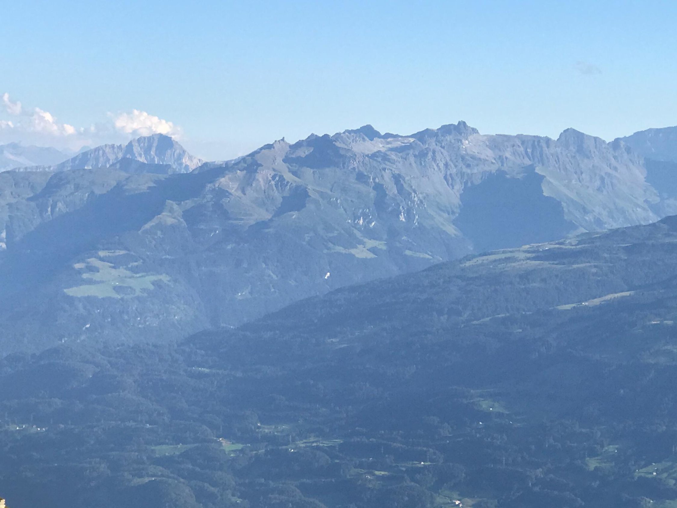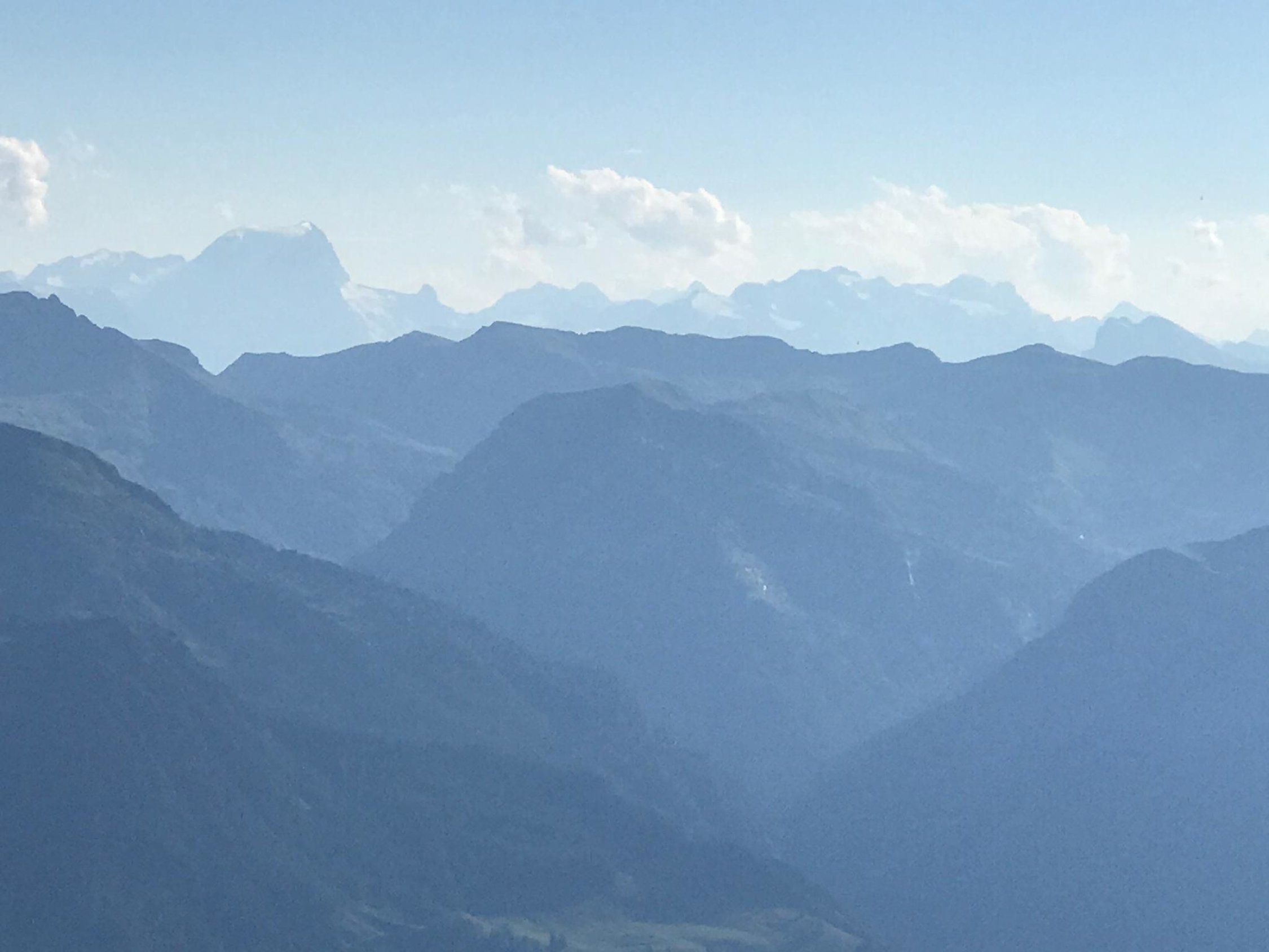 Sehr heisse Verhältnisse, bis auf ein paar Wolken wolkenloser blauer Himmel. Um 18 Uhr abend auf 2300 m Höhe immer noch 25° C. Hin und wieder kräftiger Wind aus Südwest. Dunstige Verhältnisse mit eingeschränkter Fernsicht.