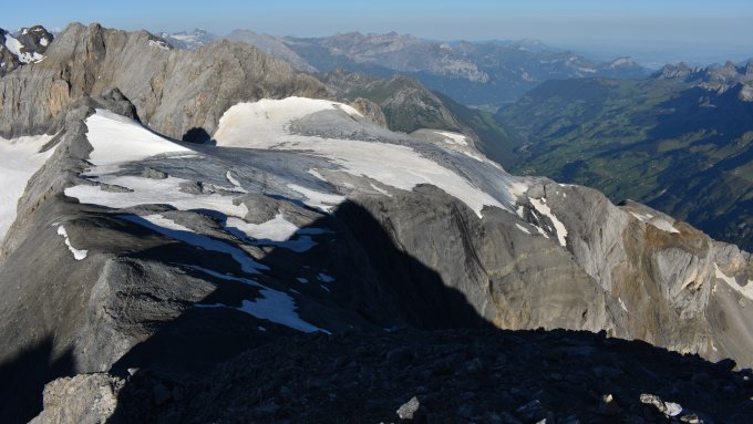 Trocken und schneefrei über den Grat. Beim Iswändli Blankeis und kaum Spalten
