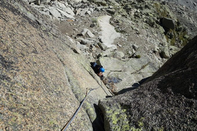 Top Bedingungen am Grat, wunderschöne Tour in bestem Fels. Die Tour ist alpin angehaucht, auch der Zustieg ist nicht ganz ohne. Auf jeden Fall nicht zu weit oben im steileren Teil des Gletschers queren, da dort z.T. heikles Schuttgelände auf Eis.