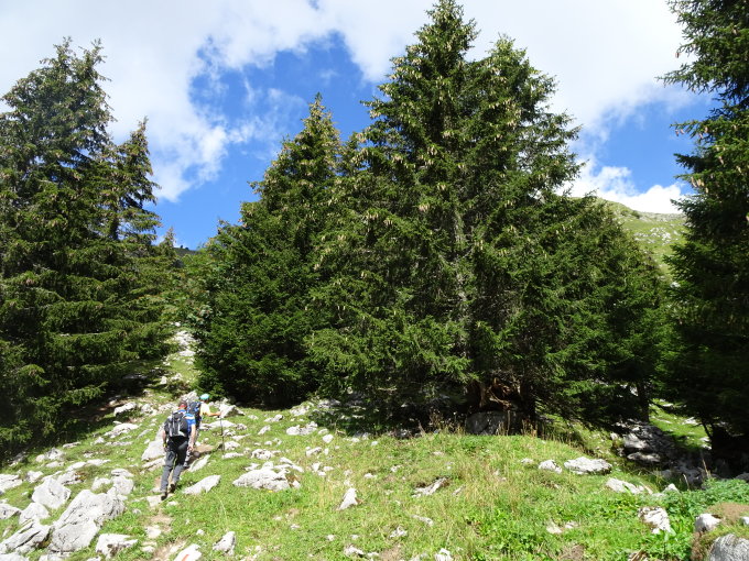 Wege grundsätzlich trocken und sehr gut begehbar. Nur die paar Stellen nordseitig waren etwas feucht. Deshalb war für uns auch die eigentliche Schlüsselstelle der kurze aber doch sehr ausgesetzte Abstieg in die Scharte zwischen Spitzflue Südwest- und Kreuzgipfel. Die Wegspuren waren feucht und rutschig, wesshalb zwei von uns den Weg über die Felsen vorzogen. Im Gegensatz dazu war die vermeintliche Schlüsselstelle(Kletterstelle im Aufstieg zur Spitzflue 1954m wahrlich ein Genuss. Die ganze Überschreitung findet aber in sehr ausgesetztem Gelände statt. Deshalb bei Feuchte/Nässe rasch heikel.