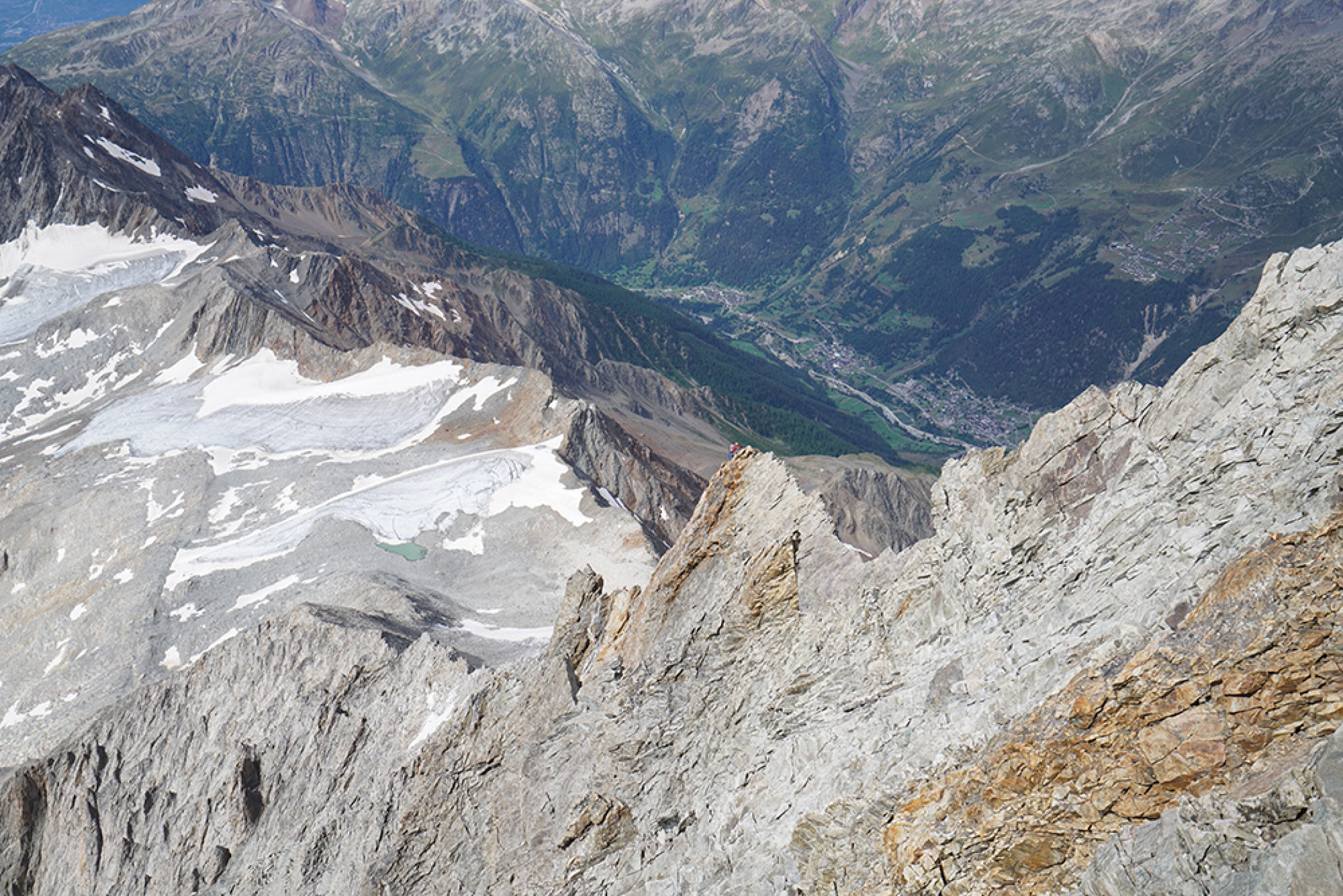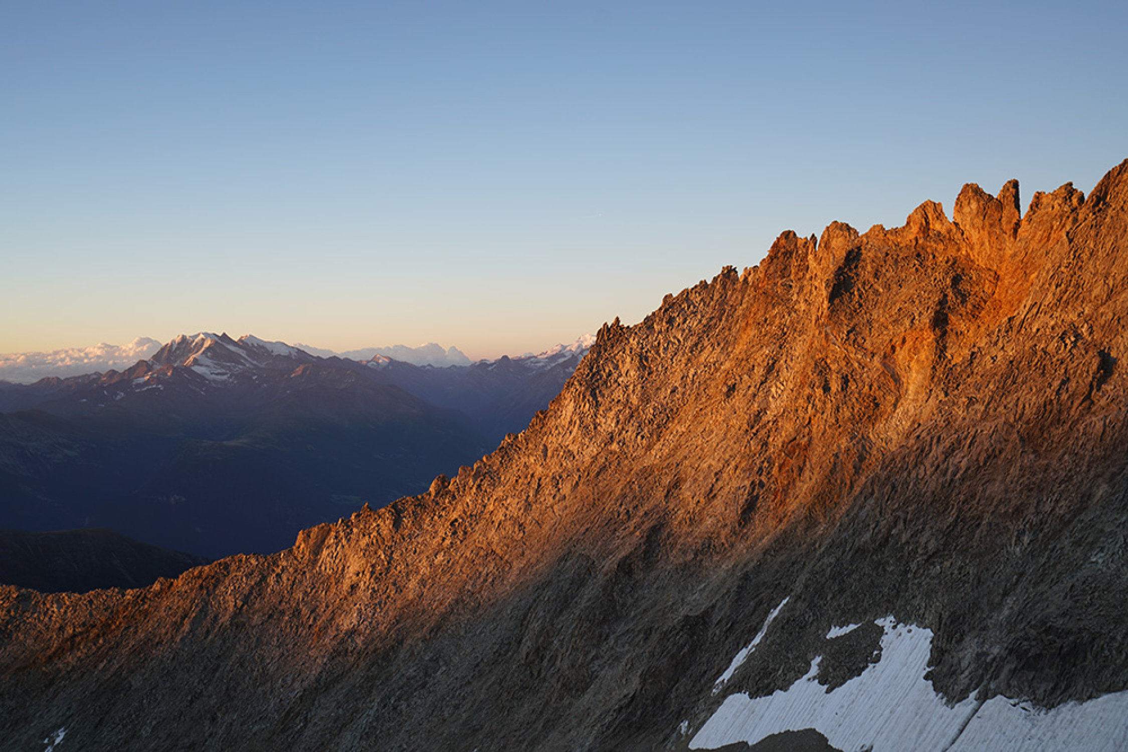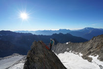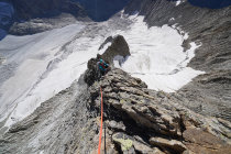 Update (16.09.): Vor etwa 2-3 Wochen scheint sich ein Bergsturz am Ostporn ereignet zu haben. Dort scheint jetzt eine Stelle ca. 5a zu sein. Kurz nach dem Felssturz musste (wahrscheinlich aufgrund der grossen Schwierigkeiten) eine Seilschaft vom Sporn ausgeflogen werden und eine erreichte erst gegen 2 Uhr Nachts die Bietschhornhütte. Am besten die Baltschiederklause kontaktieren bezüglich der aktuellen Verhältnisse am Ostsporn.