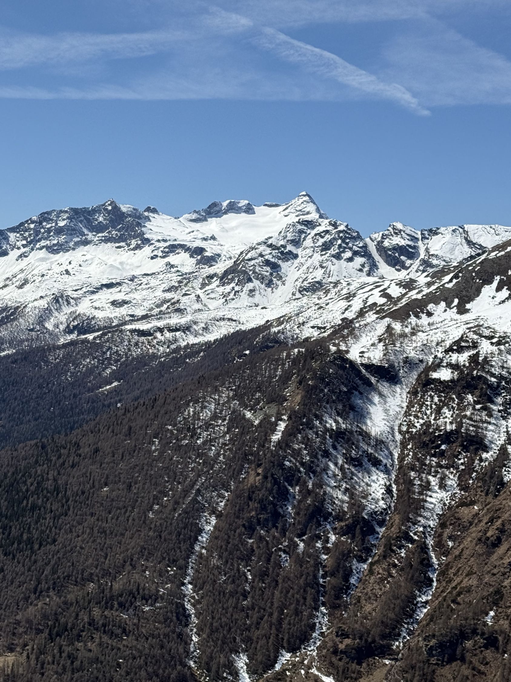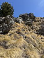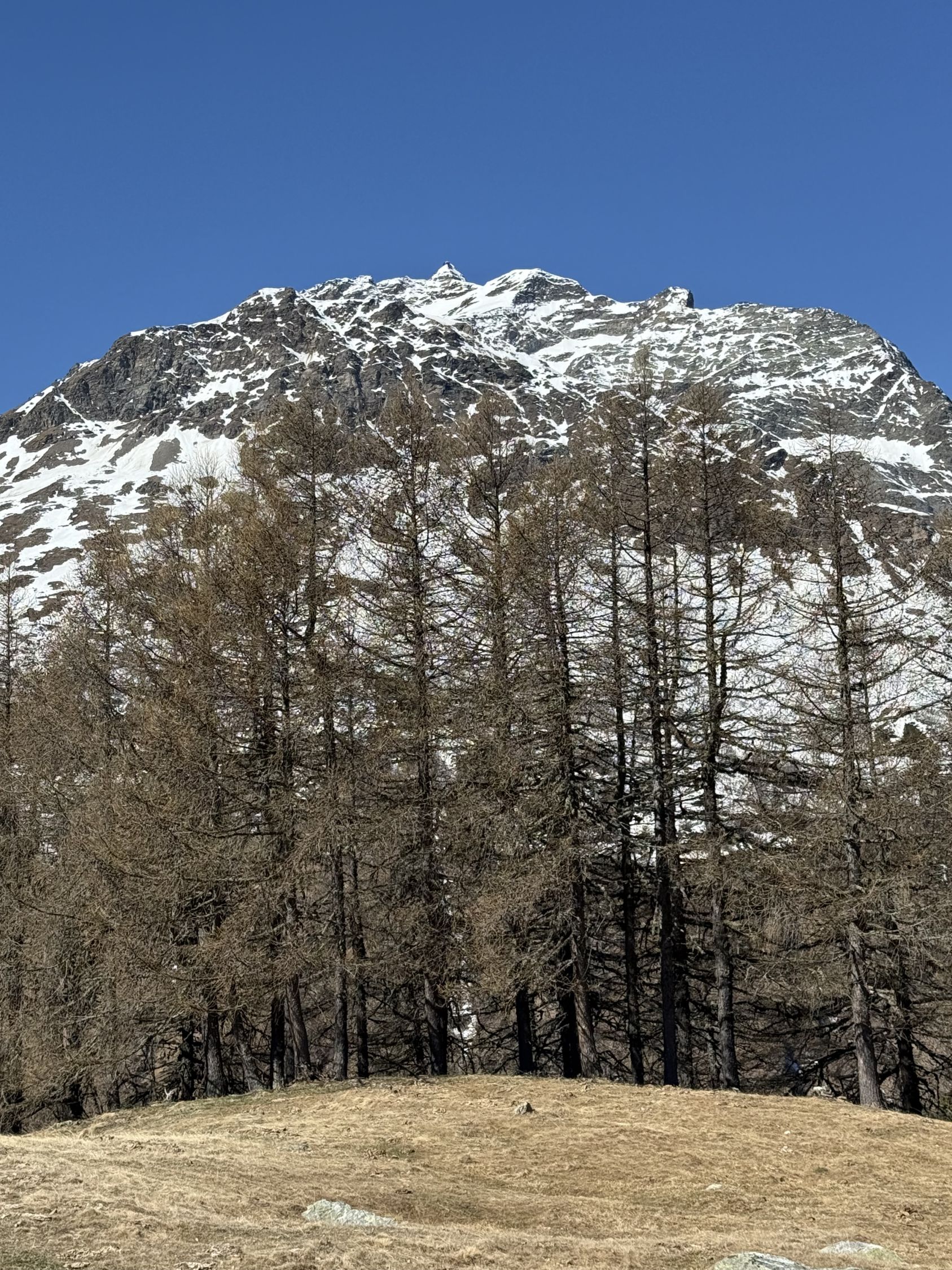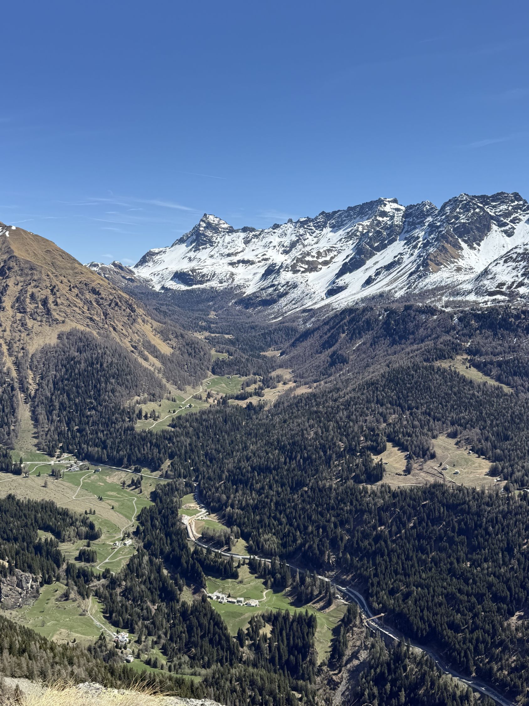 Einsame Tour auf den tollen Aussichtsgipfel hoch über dem Puschlav, ÖV Tour, T5-. Start Cavaglia RhB Station 9.15 Uhr, 5 Grad, starke Bise, blauer Himmel. Zuerst den breiten Alpweg hoch via Dava nach Brüsigon (Prairol) 1976 m. Nun auf kleinem markiertem Weglein Richtung Lagh da l‘Ombra und etwas später weglos auf den Rücken Corn Prairol bis zum Gipfelaufbau. Teilweise Wegspuren. Nun steil und mühsam hoch, rutschiges Gras, Blöcke und Felsen, teilweise über 45 Grad steil zum Gipfel. Abstieg wie Aufstieg.