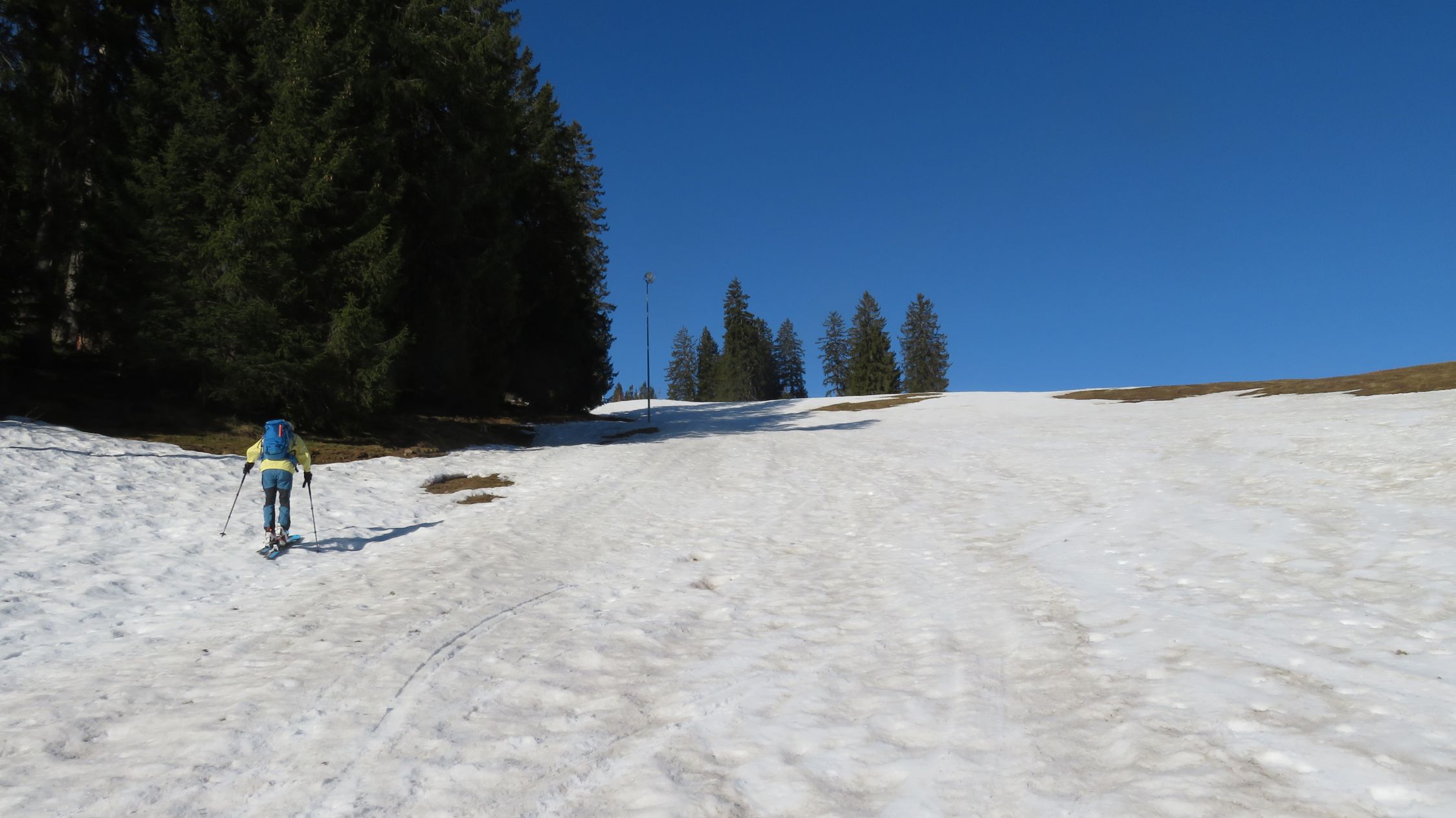 Ab Tannenbodenalp der Piste entlang über Chrüz zum Maschenkamm