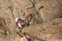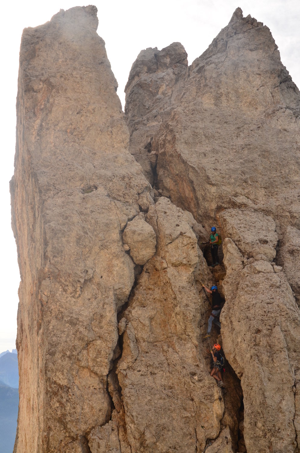 Vom Karerpass hinauf auf die Rotwandhütte. Von dort über Steig 549 zum Einstieg. Weiter ging es unter dem Fensterleturm hinauf zur Rotwand 2806m. Weiter über den Klettersteig zum Vajolonpass und über den Steig 551 und 541 zurück zur Rotwandhütte und Retour zum Karerpass.