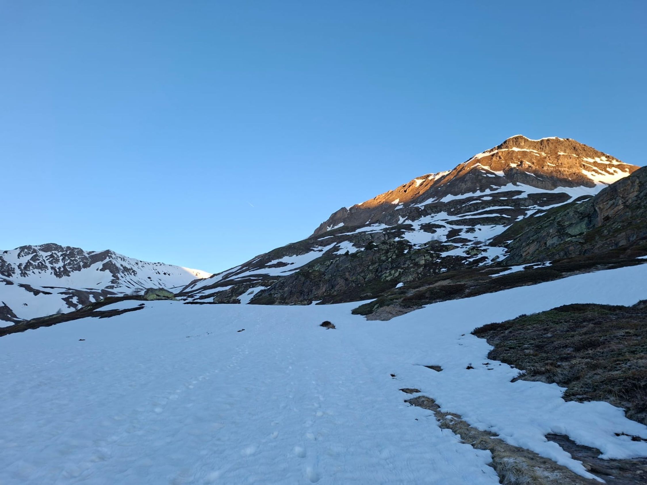 Nach einer kalten und klaren Nacht Schnee hart/gefroren. ABER, eine durchgehende Schneedecke gibt es nicht mehr. Für Skitüreler ist tragen angesagt. Das Tochuhorn ohne Schneeschuhe erreicht da praktisch aper. Der Zustieg zum Ärezhorn dann mit Schneeschuh bis zum Spitzhorli. Abstieg bis Üsseri Nanzlicke auf dem Bergpfad da überwiegend aper. Danach leicht aufgefirnt und angenehmer Abstieg mit Schneeschuh. Ab etwa 2300m zu Fuss und Schneeschuh auf dem Rucksack.