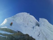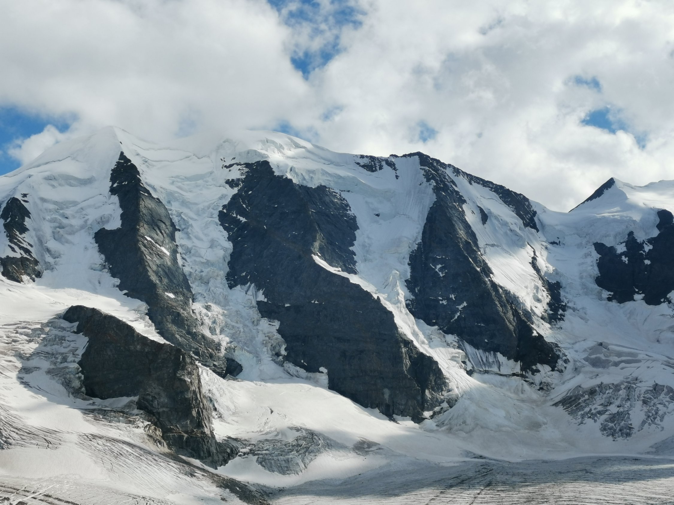 Rechts der Eisnase löst sich langsam ein sehr großer Serac. Der Riss geht weit ins Eis, der Block ist aber noch nicht vollständig frei.