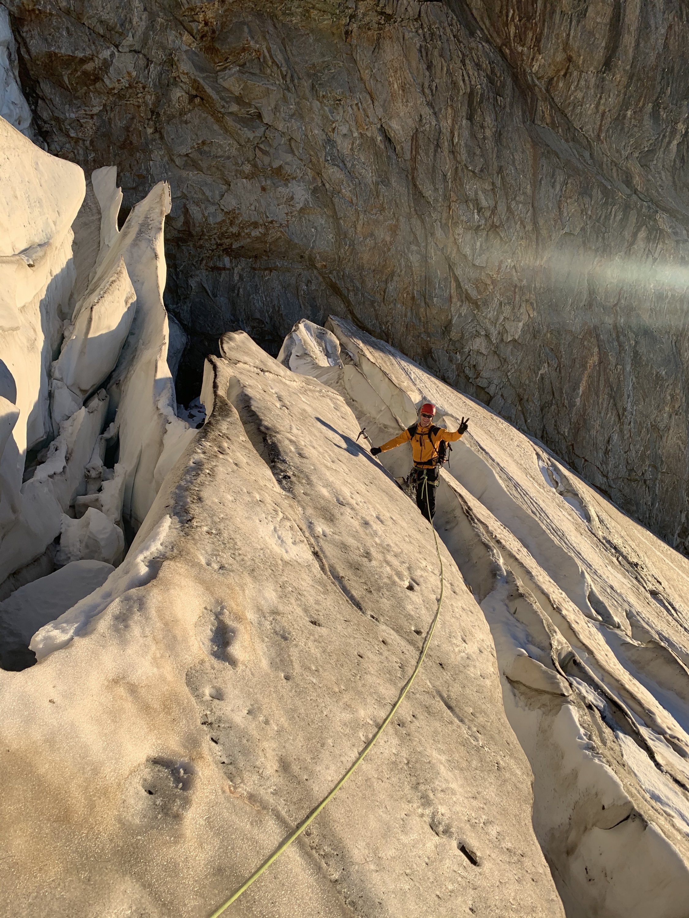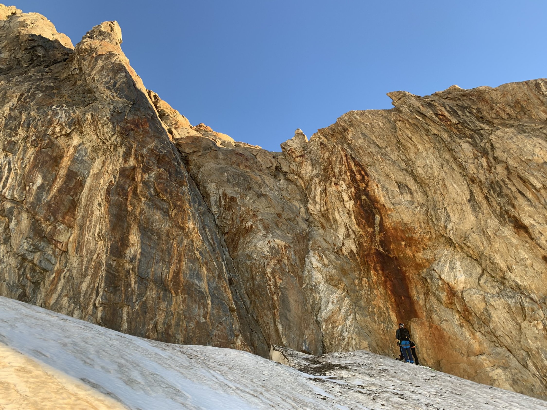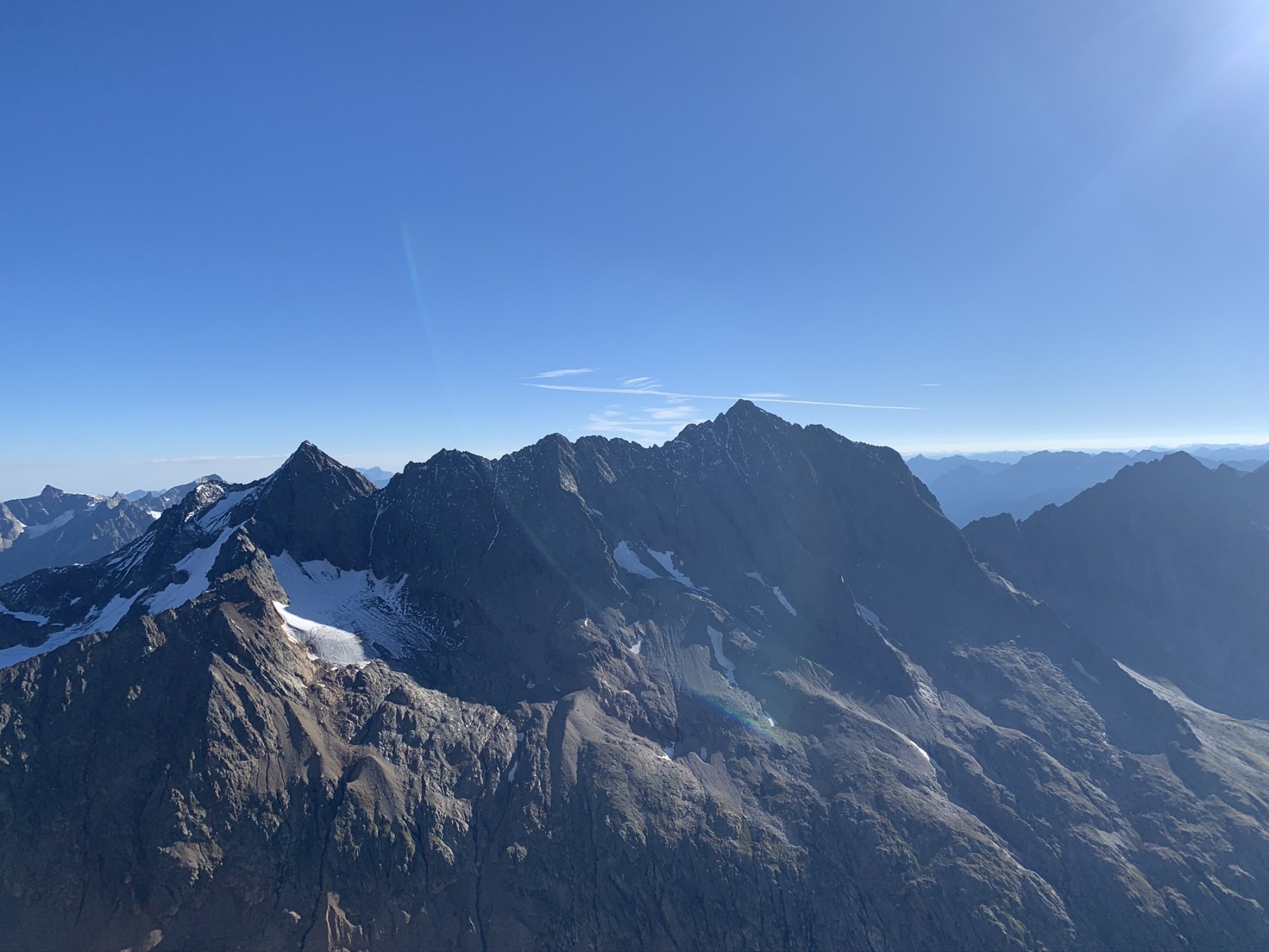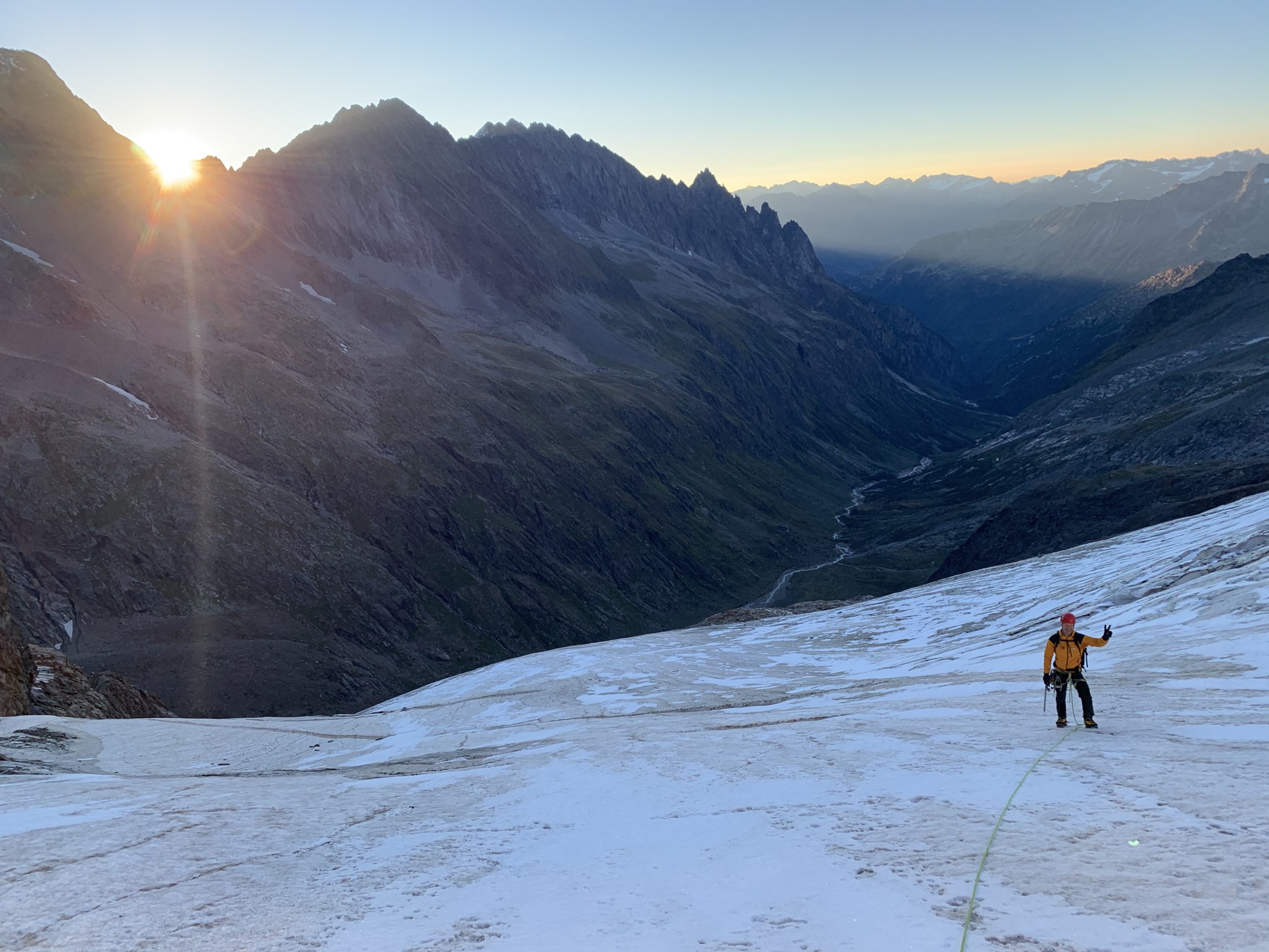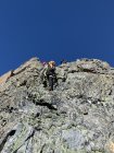 Der Ostgrat ist äusserst lohnend, meist bester Urner Granit. Die angebrachten Bohrhaken und einige Muniringe sind sinnvoll, da der Fels oft so kompakt ist, dass sich nicht immer mobile Sicherungsmittel einsetzen lassen. Um 5:15 starteten neben uns noch drei weitere Seilschaften. Dank der Bergführerseilschaft vor uns gestaltete sich die Routenfindung recht einfach, ins Topo mussten wir praktisch nicht schauen. In Erinnerung bleibt uns sicher das Mass der gegenseitigen Rücksichtsnahme - so macht Bergsteigen wirklich Spass und statt Stress fand sich Zeit für das eine oder andere Pläuschchen.