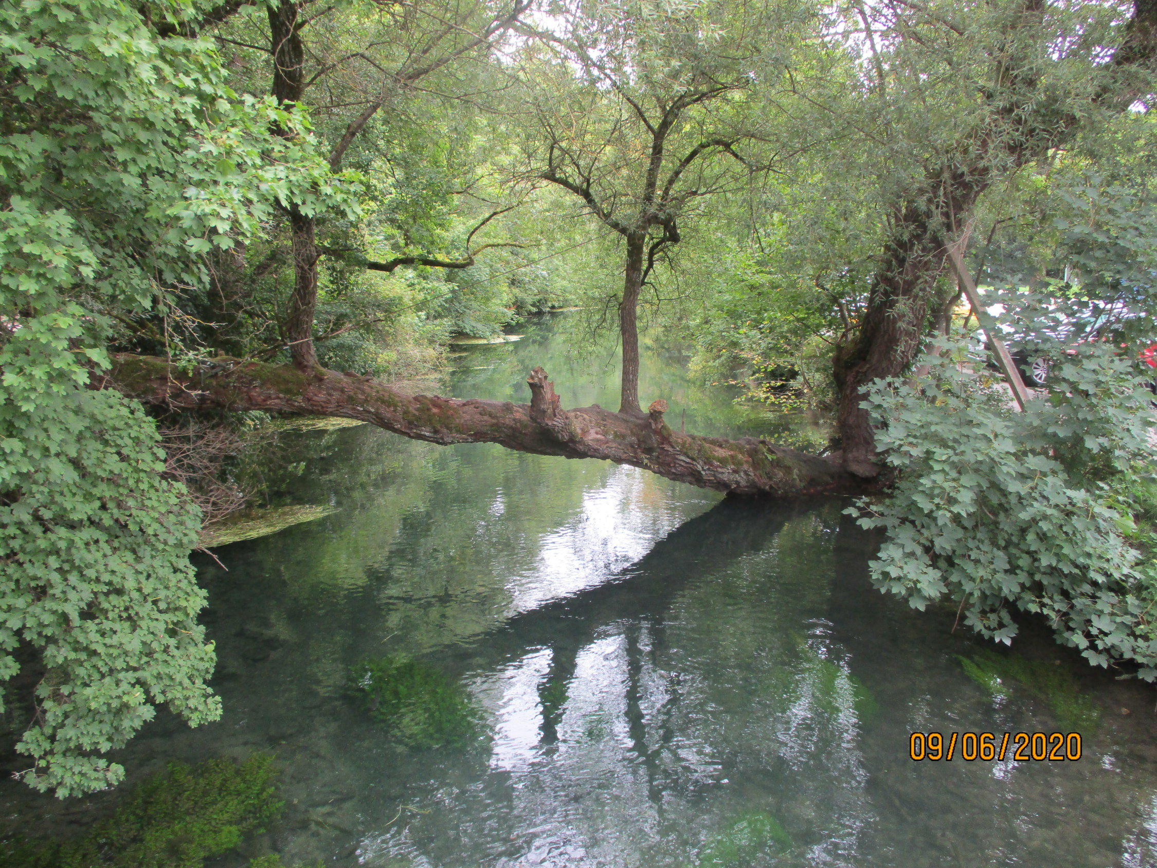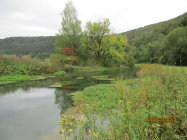 Im Wald geht es nun weiter bergab, bis wir auf einen Qerweg treffen, welchem wir nach rechts folgen. Wir marschieren am Waldrand entlang, unter uns die Flussaue der Blau. Es lohnt sich, einen Abstecher direkt ans Ufer zu machen und diesem auf einem Wiesenpfad zu folgen. Immer weiter der Blau flussaufwärts folgend, gelangen wir schließlich wieder zum Blautopf.