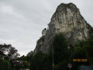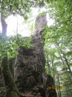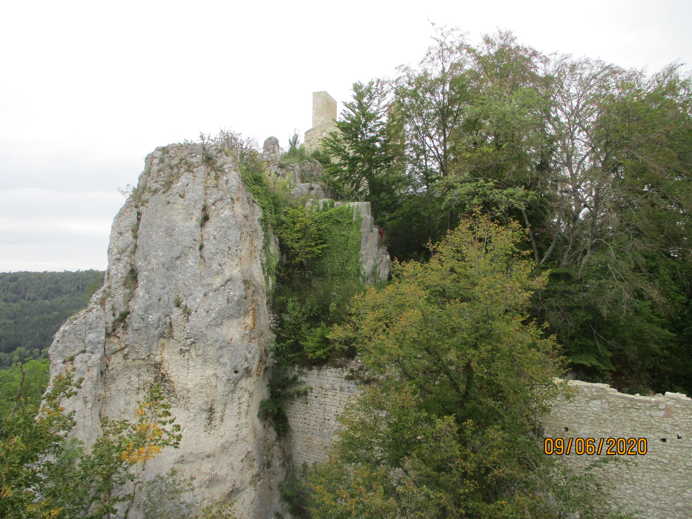 Das auf einem Felsen thronende Rusenschloss (672 m) konnten wir vom Knoblauchfelsen aus schon betrachten. In wenigen Minuten erreichen wir das Eingangstor und können sowohl die Burgruine inspizieren, als auch die Aussicht genießen, bevor wir die Burg durchs untere Tor wieder verlassen.Unmittelbar nach Verlassen des Tores können wir rechterhand einen Hügel hinaufsteigen, um eine gute Ansicht der Burg zu erhalten.