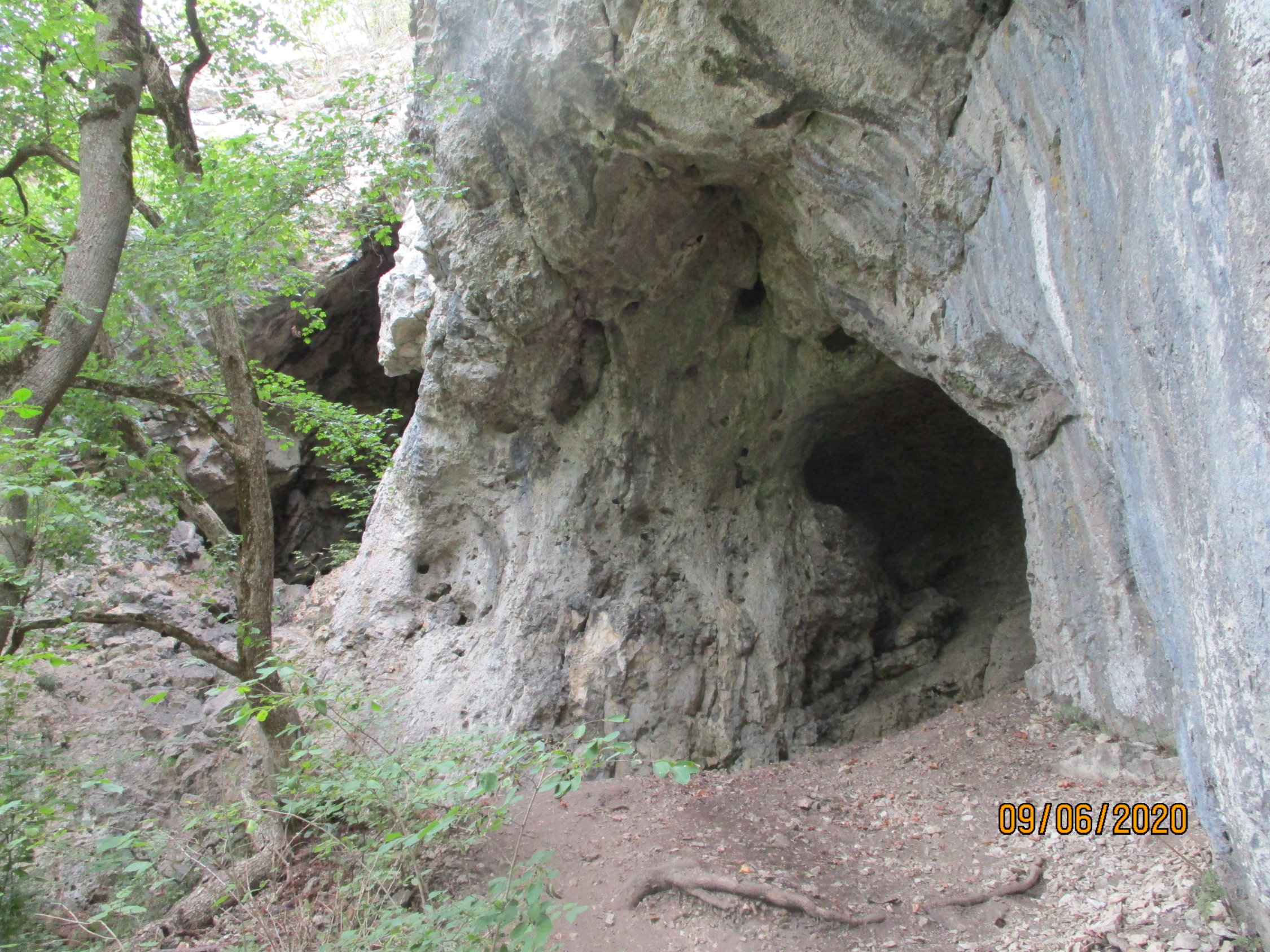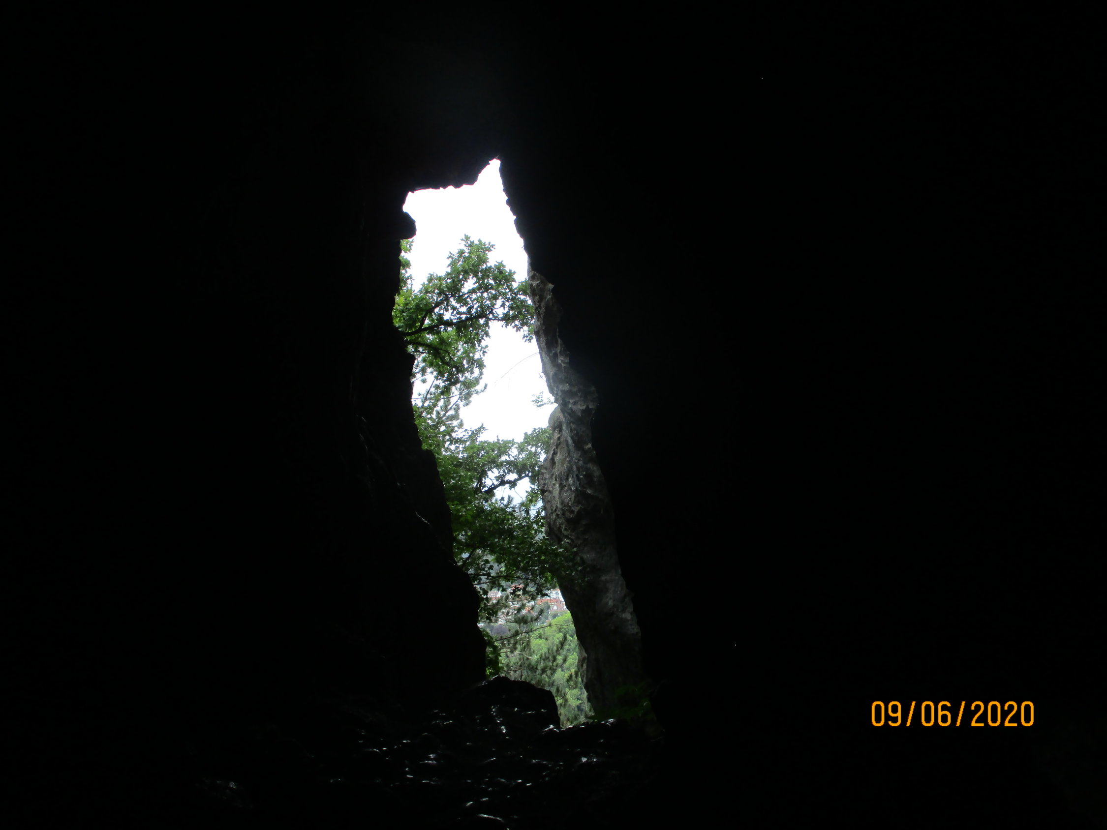 Der Weg verzweigt sich jetzt. Die rechte Gabel führt uns durch eine Höhle hindurch, die linke Gabel umgeht diese.