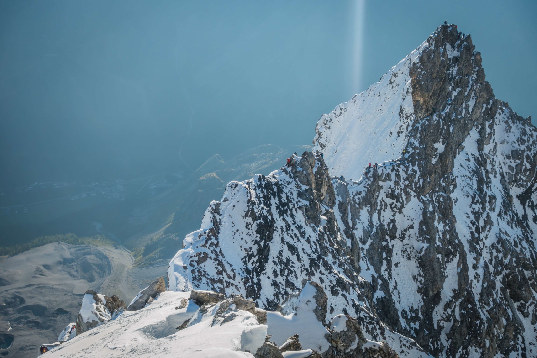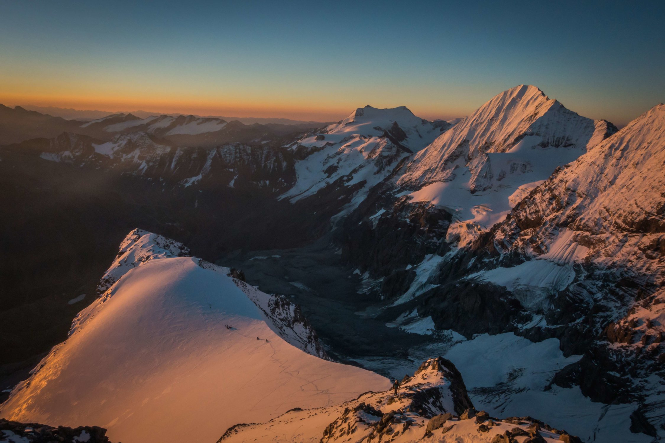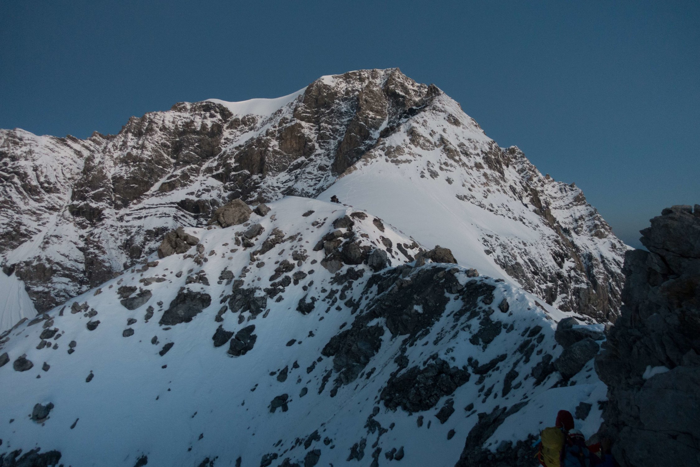 Super Verhältnisse am Grat! Bis ca. 50 Hm unterhalb vom ersten Eisfeld praktisch schnee- bzw. firnfrei, nur kurze Passagen. Erstes Eisfeld bis zum Ausstieg gut ohne Steigeisen zu gehen, ab da empfehlen sich dann Steigeisen, am besten bis zum Gipfel, wobei aber auch Seilschaften ohne Steigeisen unterwegs waren. Abstieg problemlos dem markanten Normalweg folgend (ab dem Biwak kann kurz vorher zum Bärenloch runter abgestiegen werden). Spalten gut sichtbar und fest, früh dran sein und tageszeitliche Erwärmung beachten!!