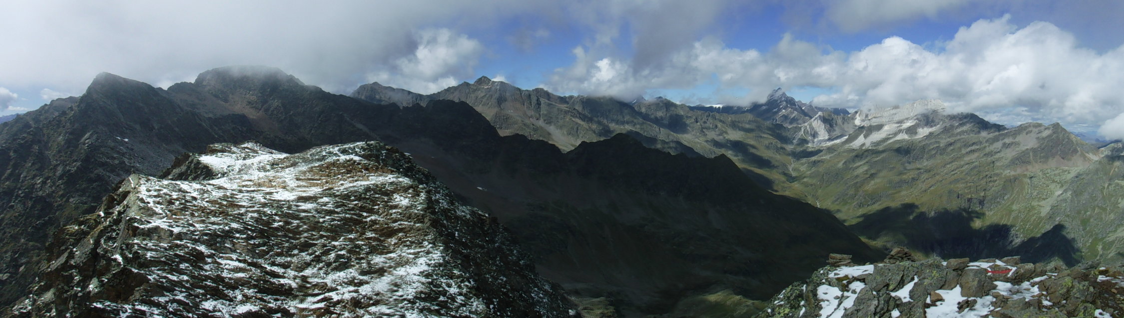 Tourenbeginn um 08:05 Uhr bei 13°C und Sonnenschein. Ab 2800 m ca. 15 cm Neuschneeauflage.