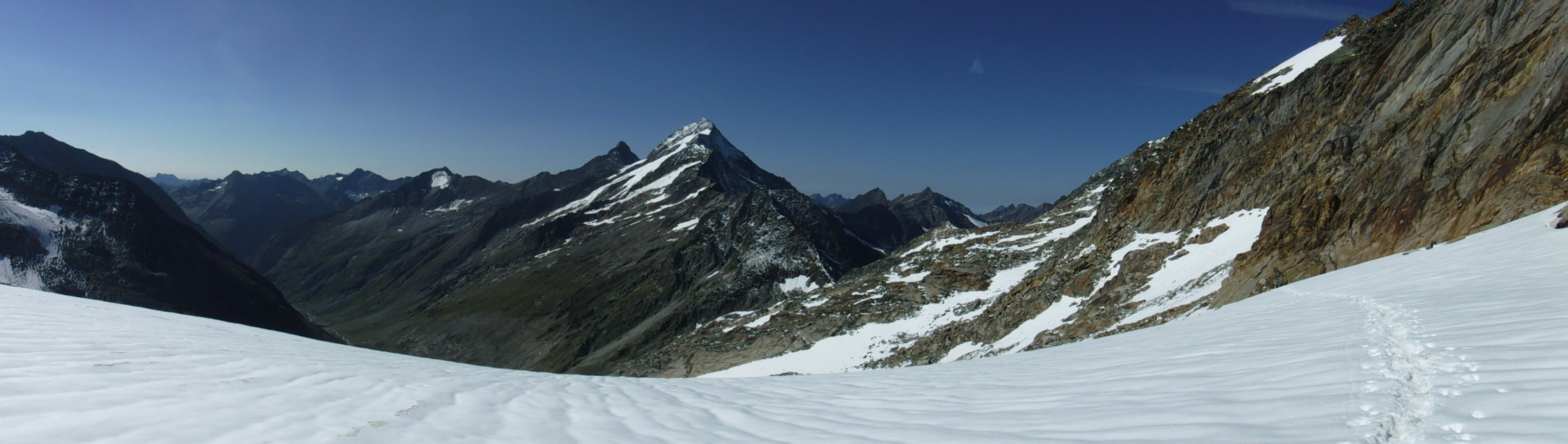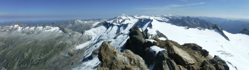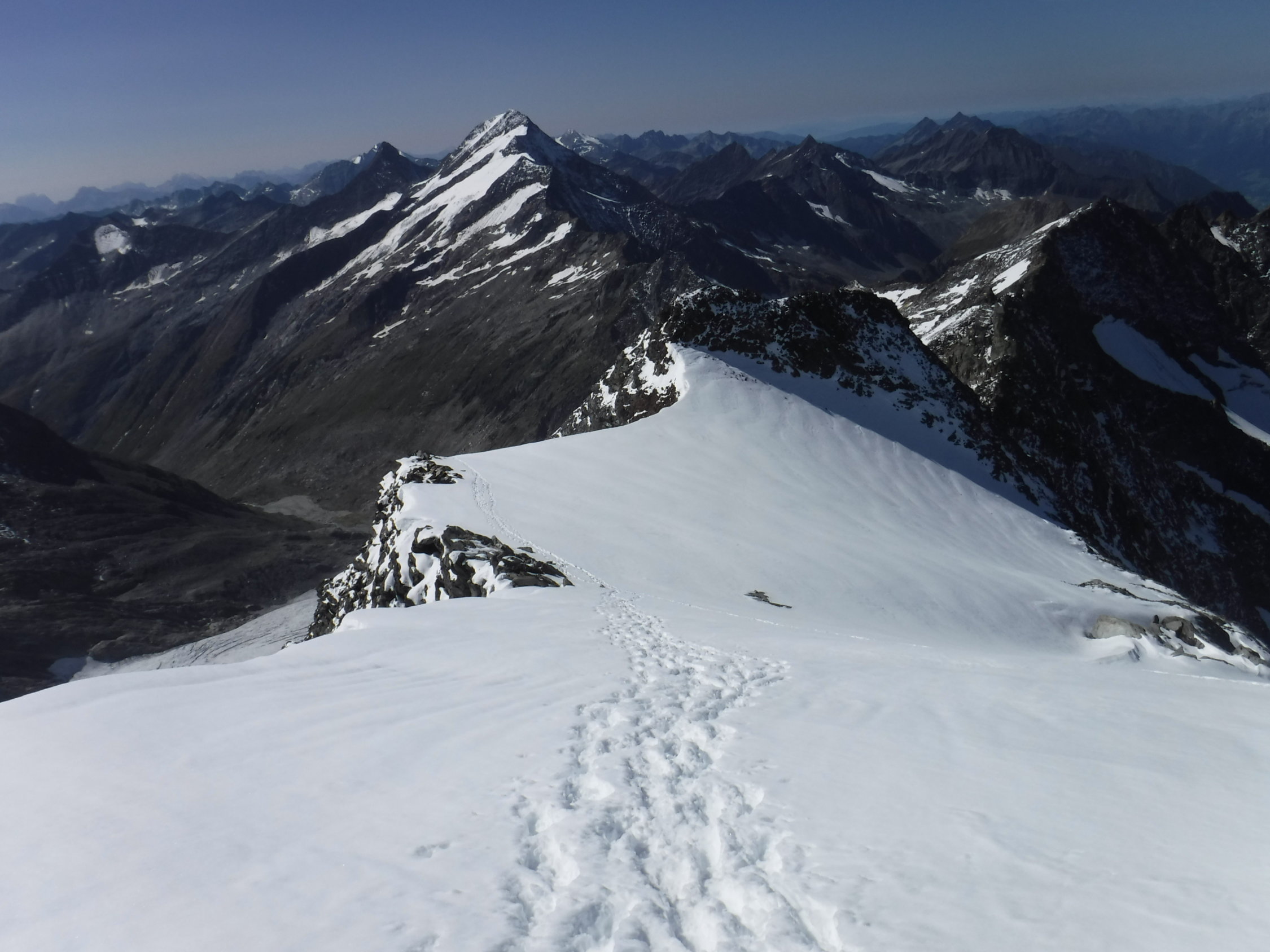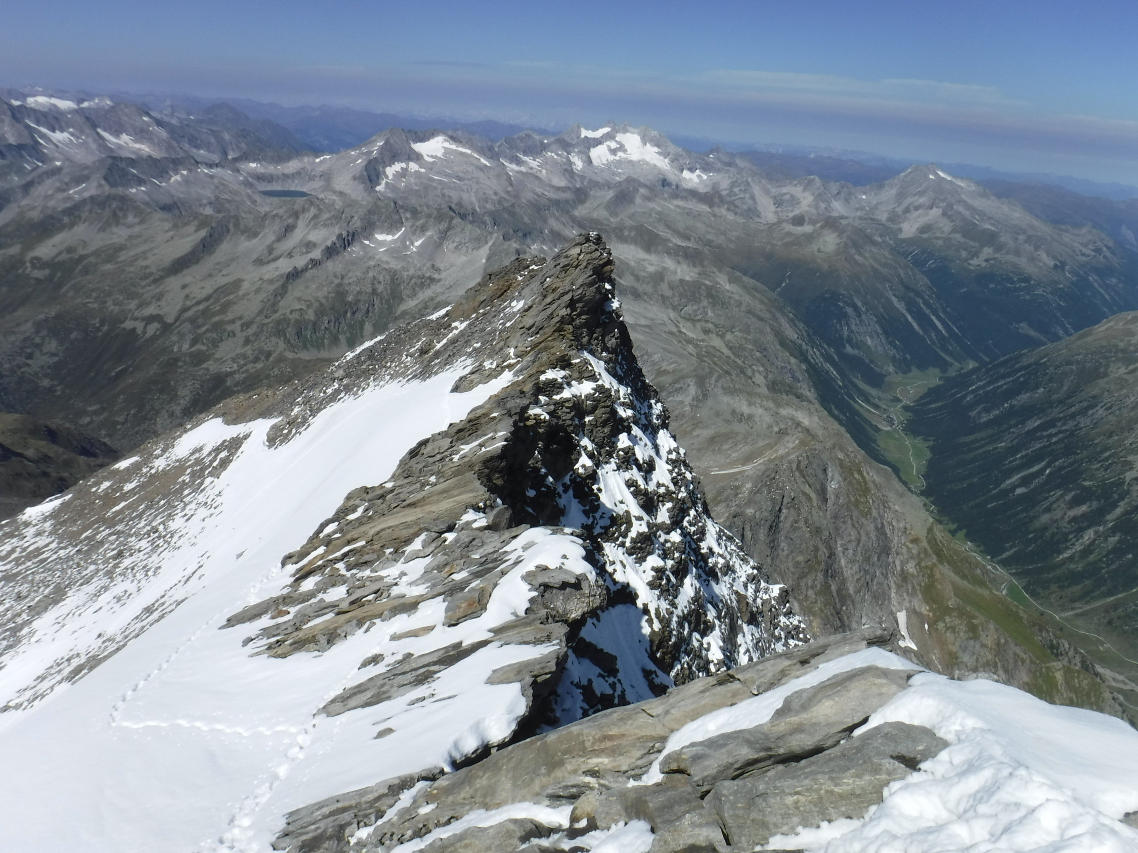 Aussichtsberg per excellence im Osten der Venedigergruppe. Blick zum nahen Großvenediger, fernen Großglockner im Osten und zu den Zillertaler Alpen im Nordwesten.