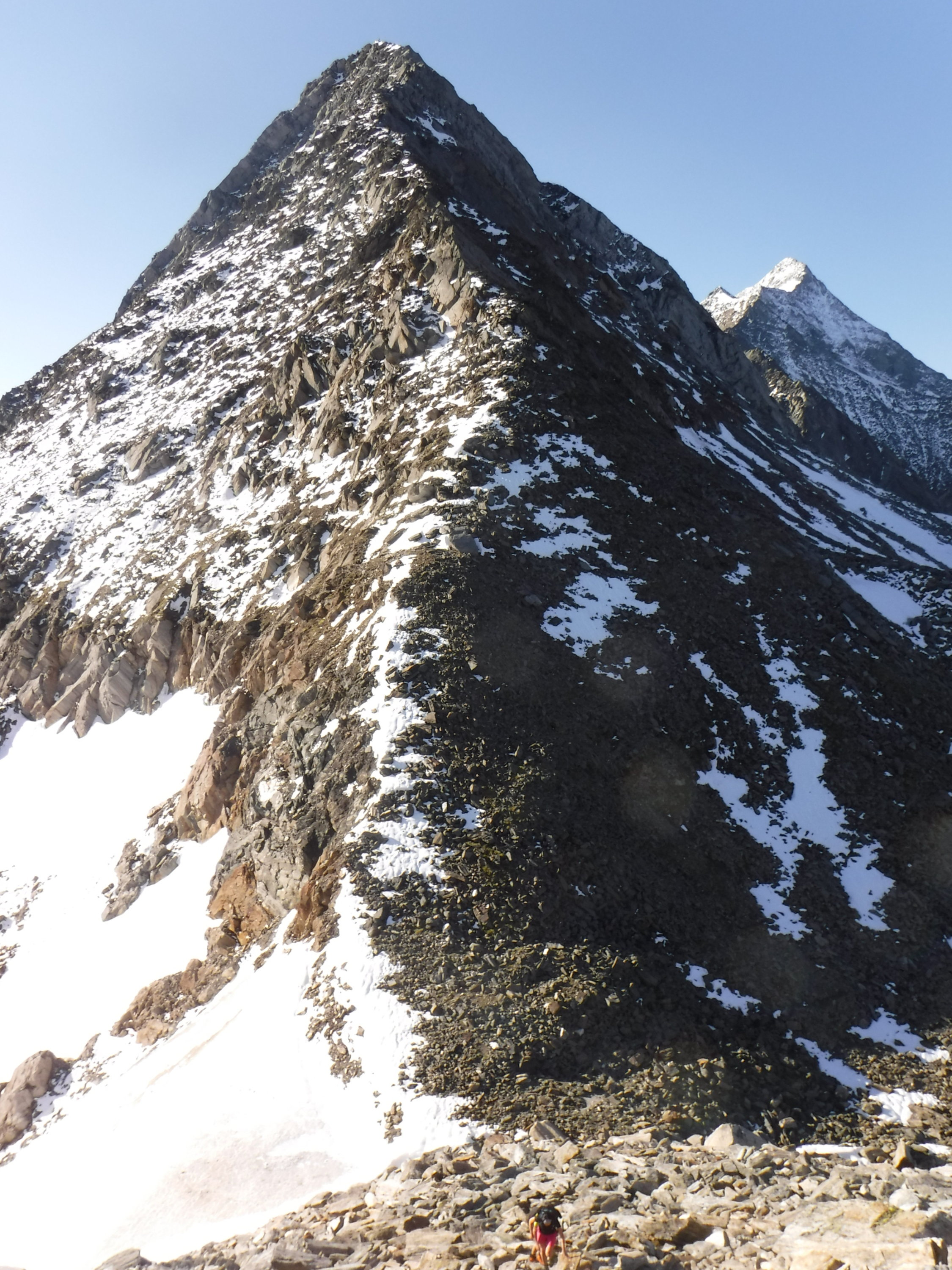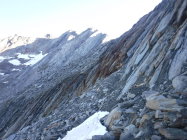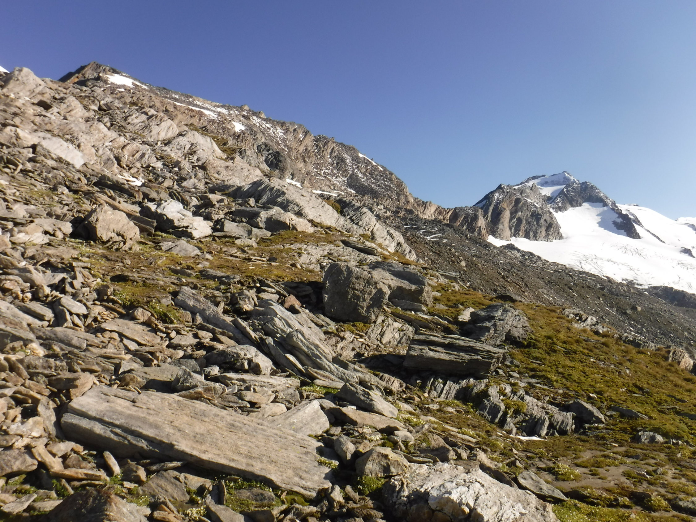 Bin morgens über die Lenkjöchl-Hütte aufgestiegen. Über den Weg kann man sogar mit einem Enduro fahren. Zurück über den Abkürzer über den nicht ausgeschilderten Moränenrücken, der sich sogar besser laufen ließ als auf dem Querweg über stellenweise Blockgesteinpassagen zur / von der Hütte.
