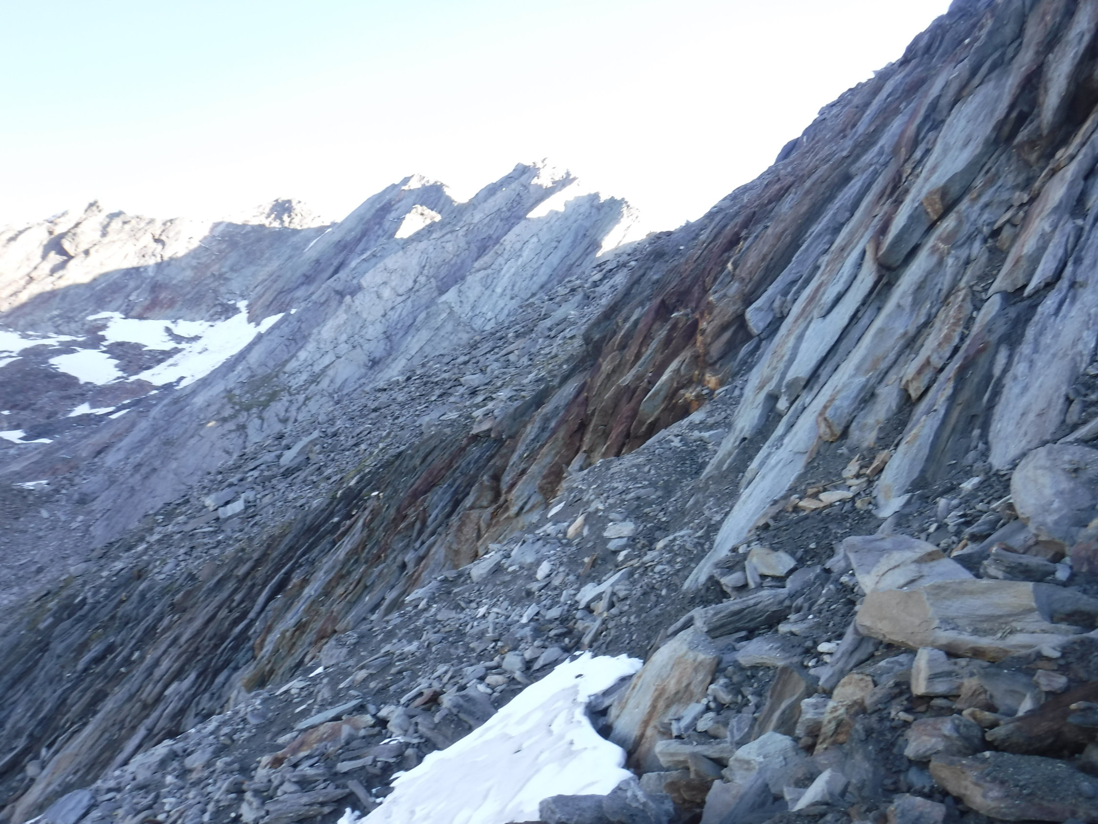 Unterhalb des Gipfels kamen mir 4 Leute entgegen, 2 Bergfreunde liefen mir voraus, einer folgte mir. Im Abstieg unterhalb der Althausschneide kam mir noch einer entgegen.