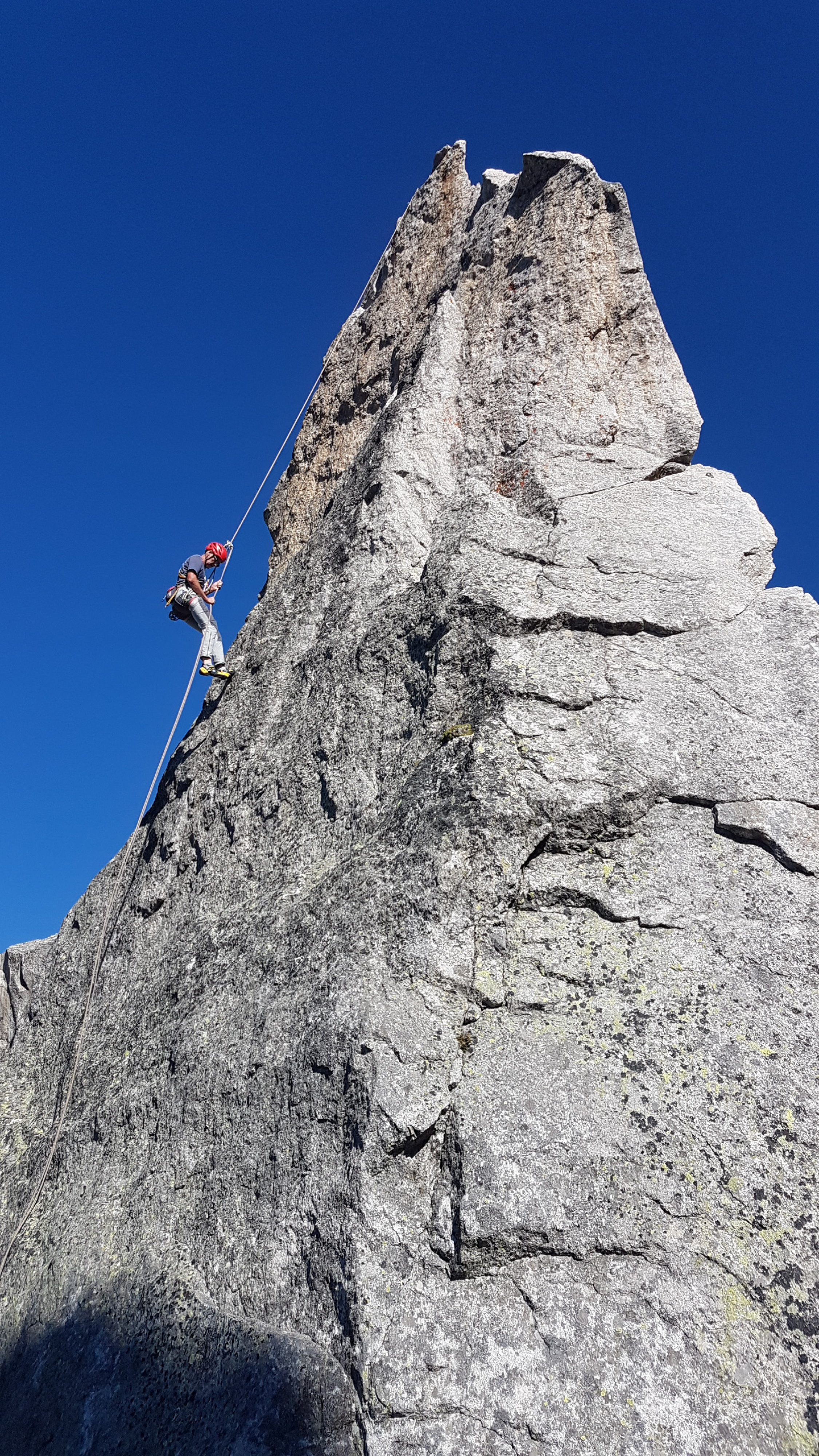 Es waren keine Leute in der Via Felici, deshalb sehr gute Bedingungen. Auch sonst wenig Leute im Gebiet. Oben bei der Fiamma ist scheinbar einiges weggebrochen. Für den Abstieg sind wir zuerst etwas auf die Bergellerseite runter und von dort zurück auf den Pfad