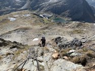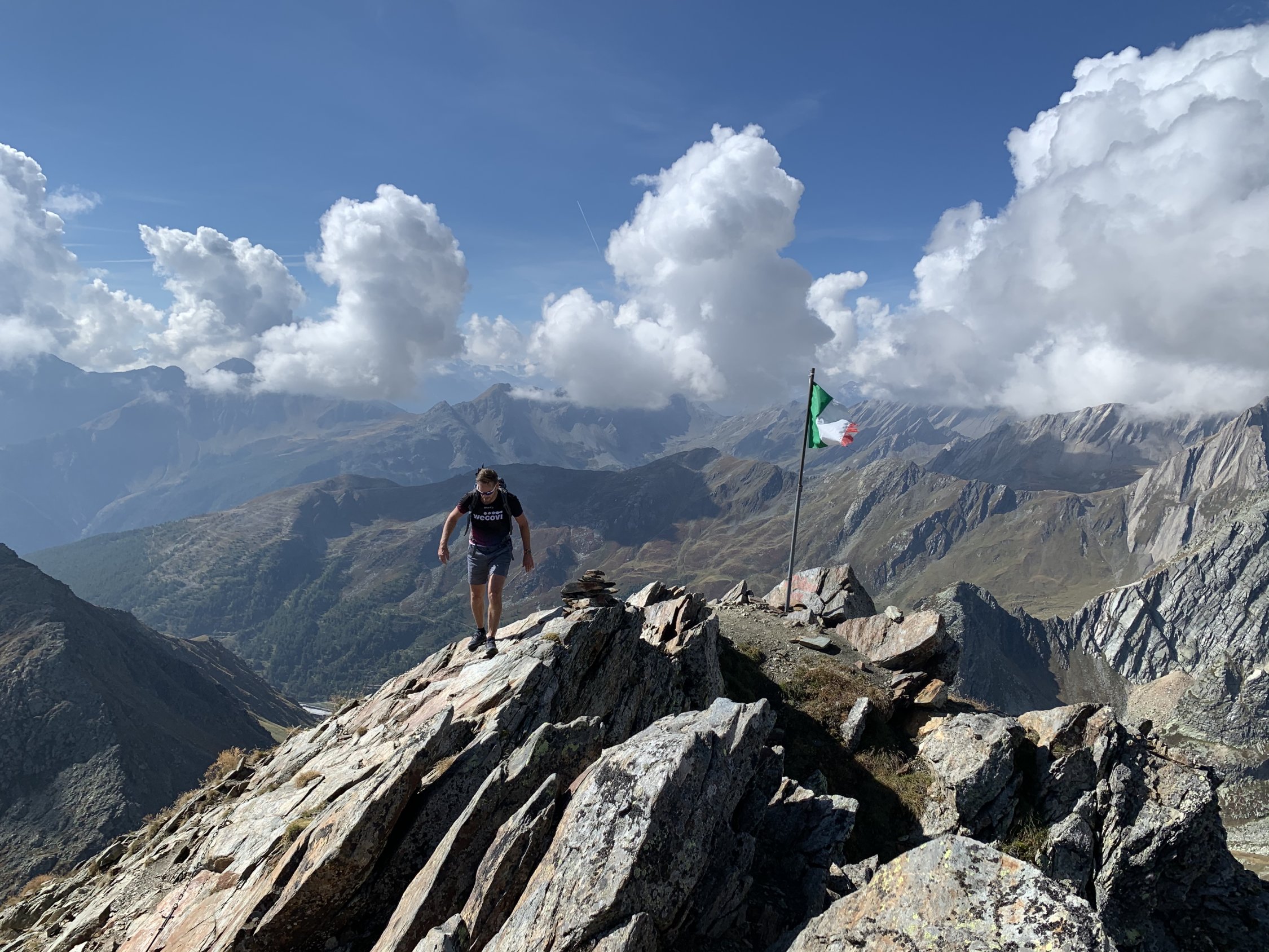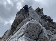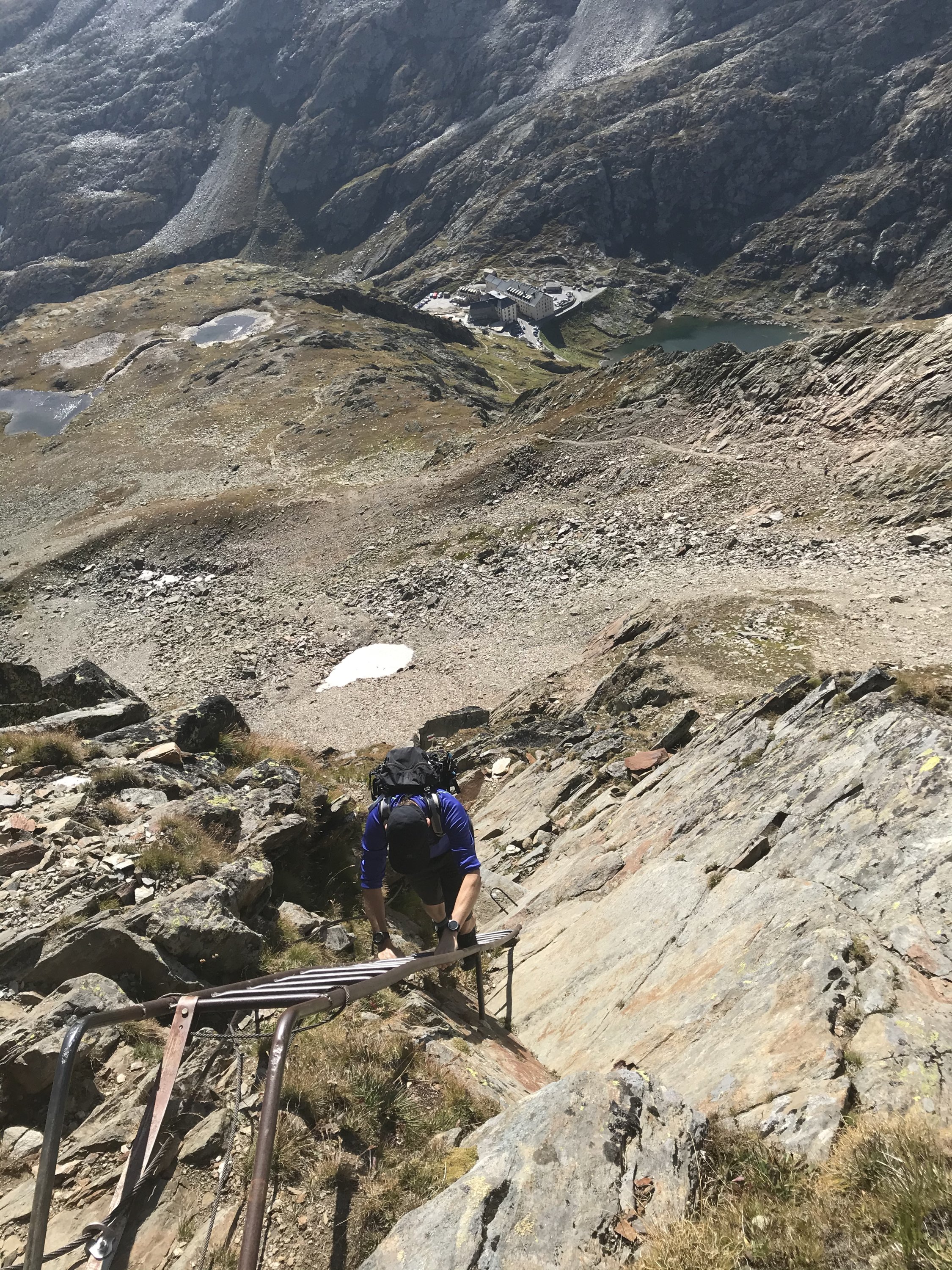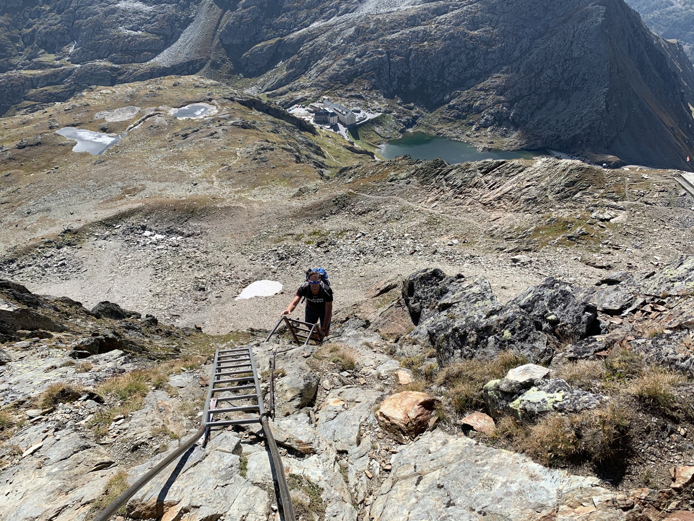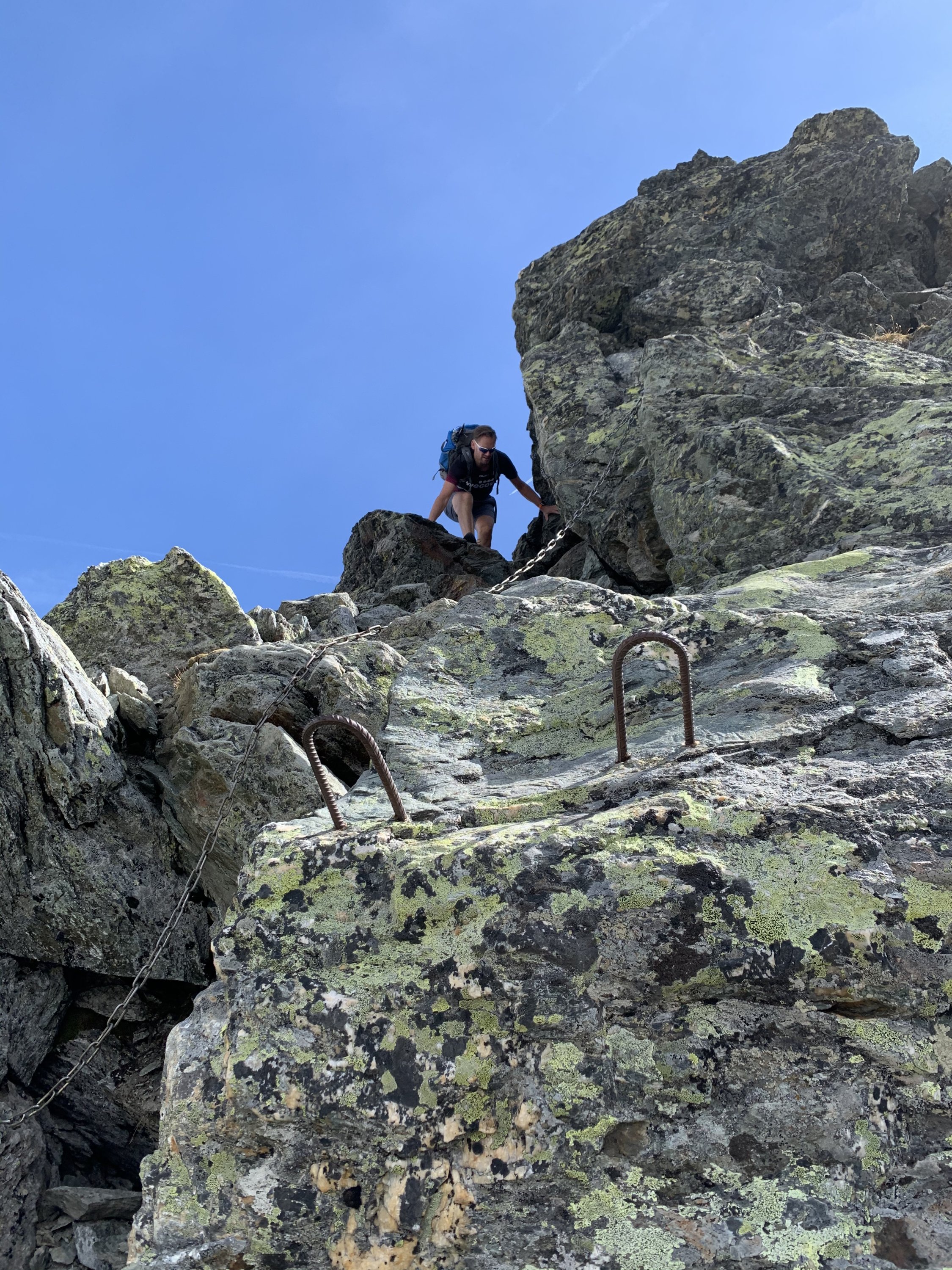 Gute Verhältnisse heute. Fast kein Wind. Recht viele unterwegs bis Pointe de Drône. Leitern und Ketten hilfreich und in guten Zustand. Nach Fenêtre d’en Haut alleine auf den Grenzgrat. Der weiterweg bis Mont Fourchon ist eine schöne Wanderweg mit einige Kletterstellen I-II glücklich ohne weitere Ketten und Leitern. Abstieg einfach auf Wanderweg(spuren). Cappucino in Italiën geniessen