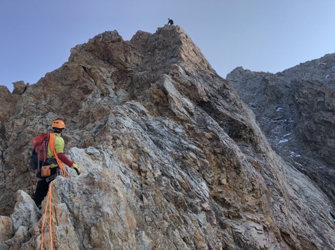 Ganze Route top Verhältnisse. Keine Steigeisen oder Pickel notwendig. Ab mittags poltert die Südwand eindrücklich, das heißt aufpassen in den Flanken. Einstieg in den westgrat am besten über den blockgrat, nicht übers firnfeld.