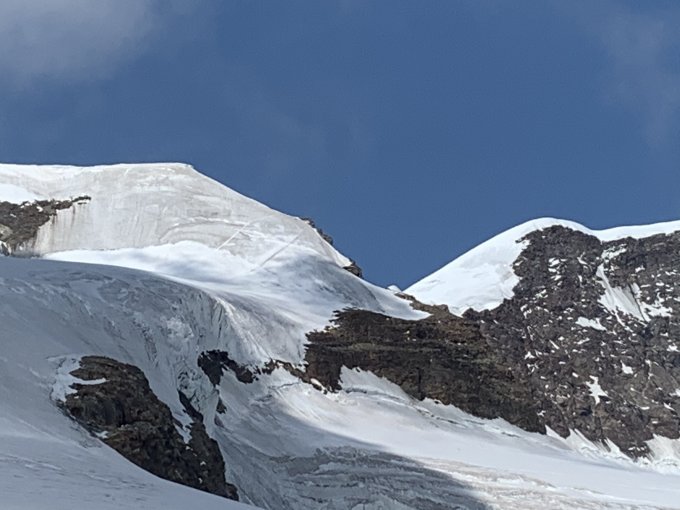 Auf den Gletscher oberhalb Hütte hatte es noch ein wenig Schnee übrig von ~2 Wochen her. Steilstelle und Grat bis Felikhorn alles hart/blank aber mit recht guten Spur machbar. Weiter weg richtung Liskamm West zuerst breit und einfach bevor es (sehr) exponiert teils Fuss breit bis unter den Steilhang weiter geht. Bis gipfel Grat geht mann im Moment durch die Begrenzungsfelsen. Wir drehten um weil es uns ein wenig zu heikel war. Führerseilshaft ist weiter; am Vortag kamen auch einige Seilschaften nach überschreitung runter.