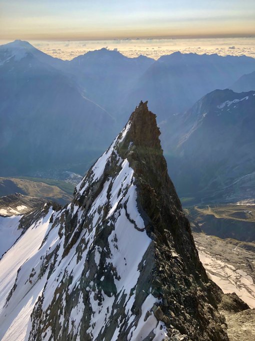 Wir haben die Lenzspitze mit der Überschreitung zum Nadelhorn kombiniert. Es herrschen die besten Verhältnisse auf der ganzen Route: