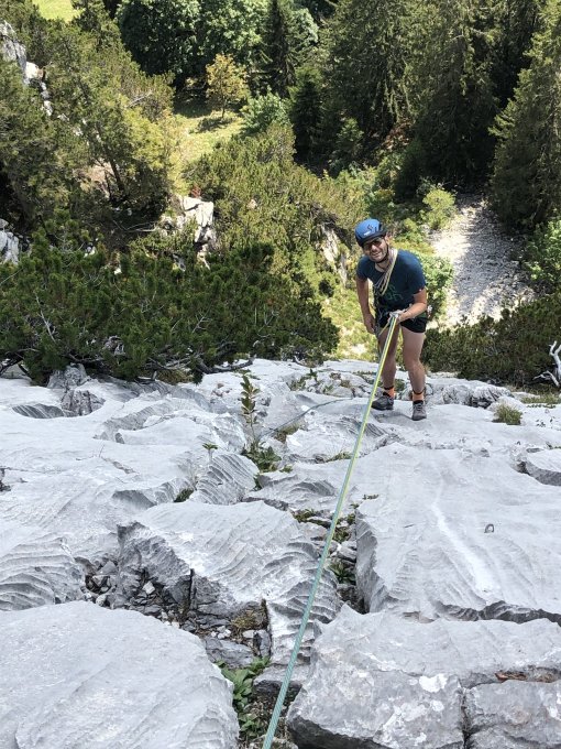 2x Abseilen über Route mit 50 m Doppelseil, oder absteigen via Glaralpina.