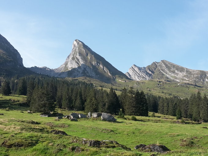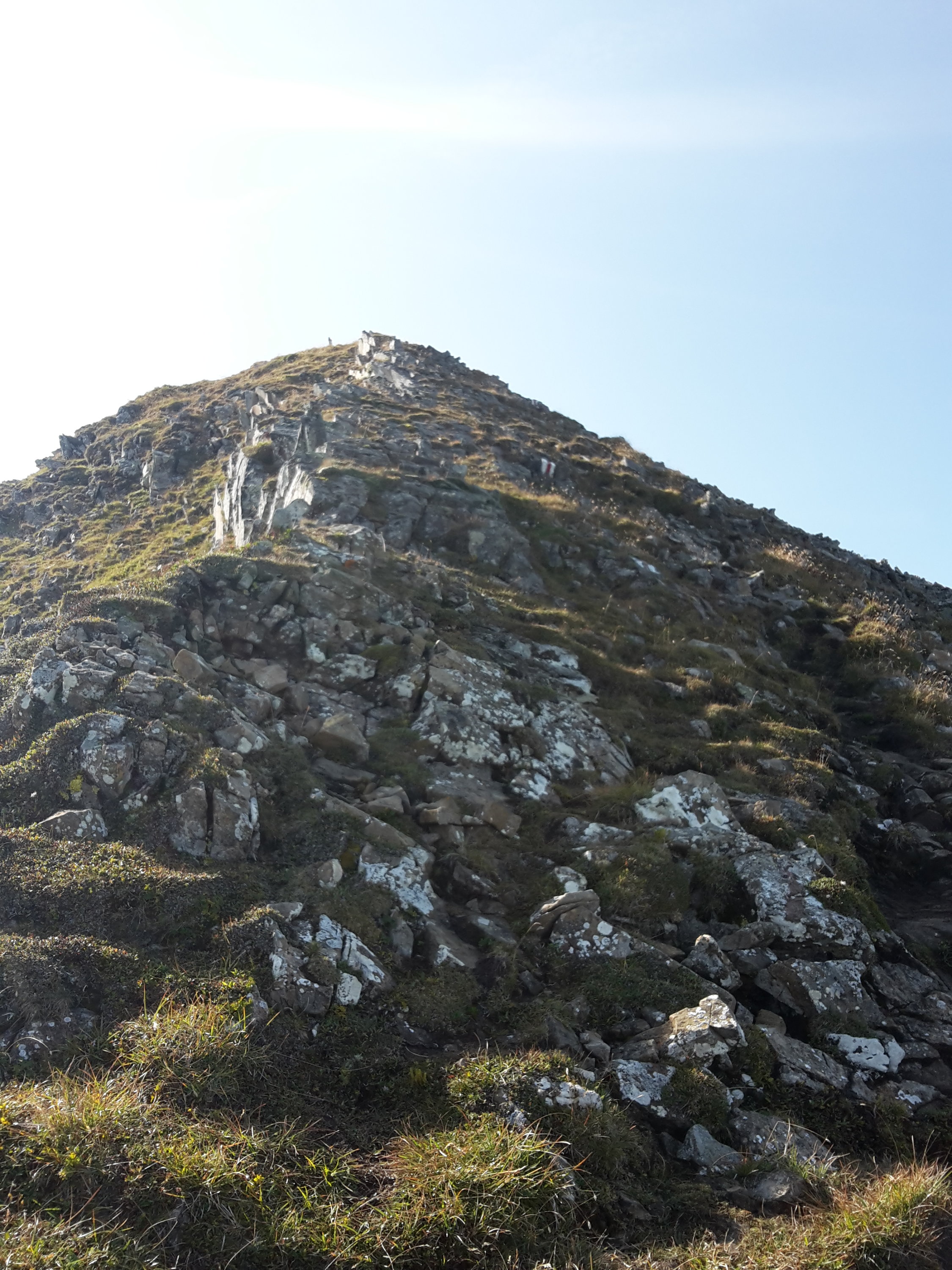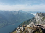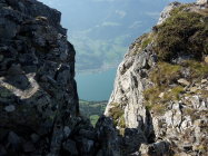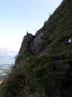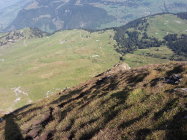 Start um 9 Uhr bei der Bergstation der Selamattbahn, dann eher langweiliges "Kilometerfressen" auf der Alpstrasse bis zur Alp Torloch (wenigstens nette herbstliche Morgenstimmung). Der Einstieg in den Gipfelhang ist recht ausgesetzt, man kann sich flott das Genick brechen. Yours truly war froh um das Fixkabel, da genau die Stelle etwas schmierig/rutschig war. Nachher auf guter, recht trockener aber durchwegs steiler Spur in vielen Kehren den Rücken hoch. Die Querung unter dem "Grat" vor dem Gipfel ist nochmals etwas exponiert, unschwierig, aber ausrutschen ist verboten. Schöne Aussicht auf dem Gipfel. Das Gipfelbuch ist schwer gepanzert und gar nicht so leicht aufzukriegen:-)