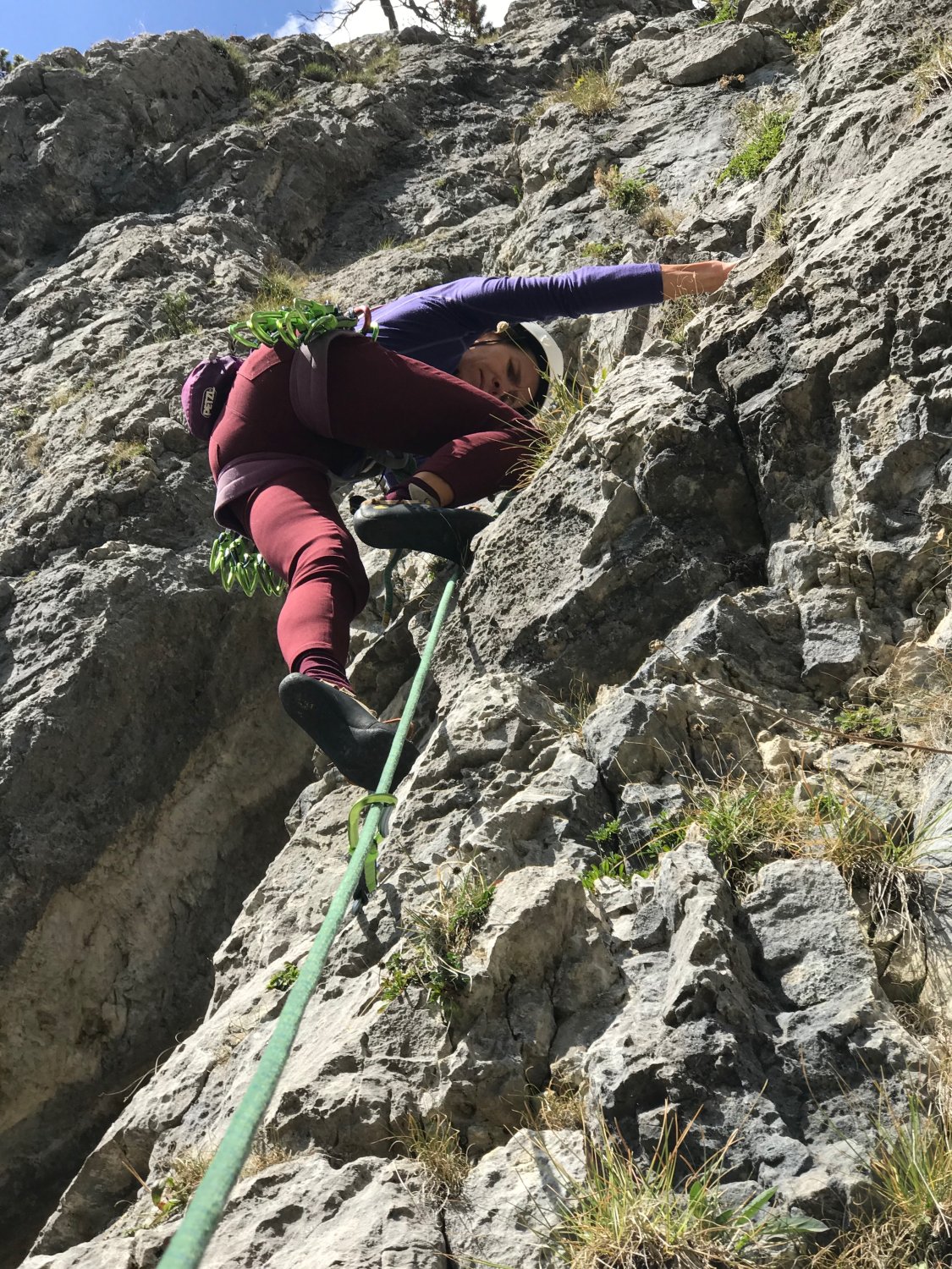 Fels wie überall auf den Denti della Vecchia super, in diesen Routen sehr scharf (wenig besuchter Sektor ...). Da der Sektor im Sommer gemieden wird, hat die Vegetation gewuchert. Deshalb nur "gut" und nicht "ausgezeichnet"...