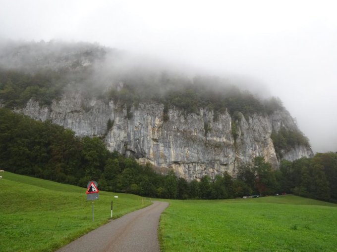 Heute eher heikel, da entgegen der Prognose (aber typisch bei der Wetterlage) der Nebel und zwischendrin feinster Nieselregen den Jurasüdfuss gefangenhielt. Der Kalk und die Wurzeln waren somit nass und sehr rutschig. Mit viel Vorsicht bei den ausgesetzteren Stellen passiert. Erst beim Abstieg etwas freundlicher. Damit trocknete es noch genügend ab, um den Abstecher zum Rundloch zu erlauben.