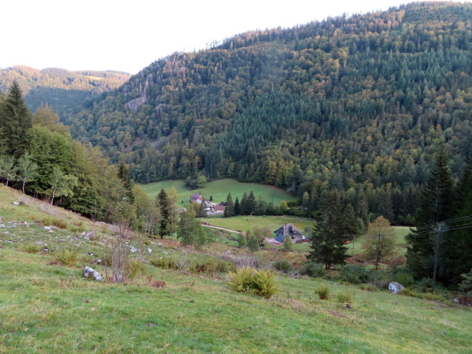 Der Abstieg durch das Biosphärengebiet mit schönen Ausblicken in das Sankt-Wilhelmer-Tal.