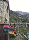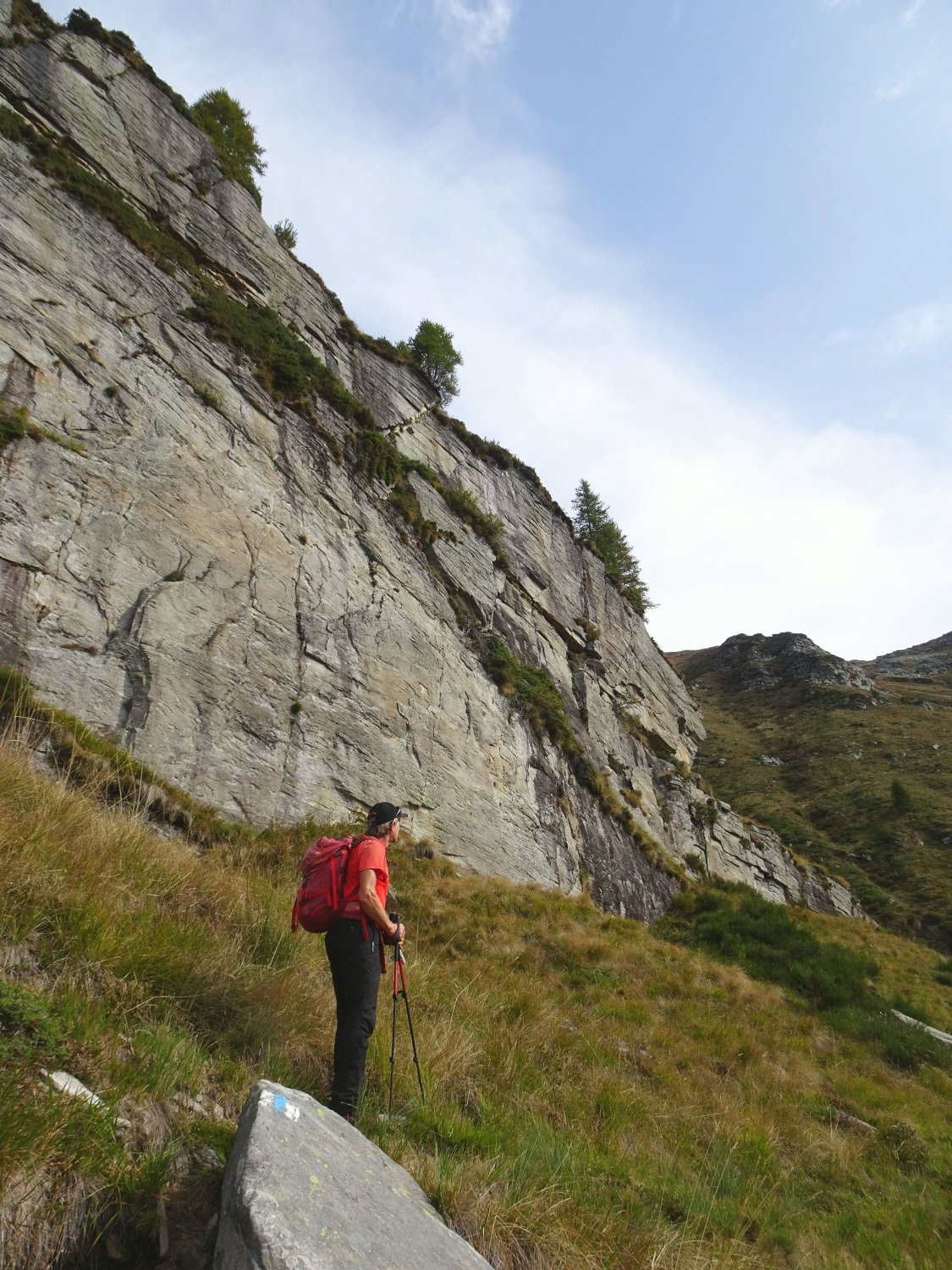 Der öfter beschriebene kleine Parkplatz am Tunnelende links ist jetzt "privato". Einige wenige Parkmöglichkeiten gibt es noch neben und unterhalb der Kirche, wo sich dann auch gleich die Wegweiser befinden.