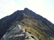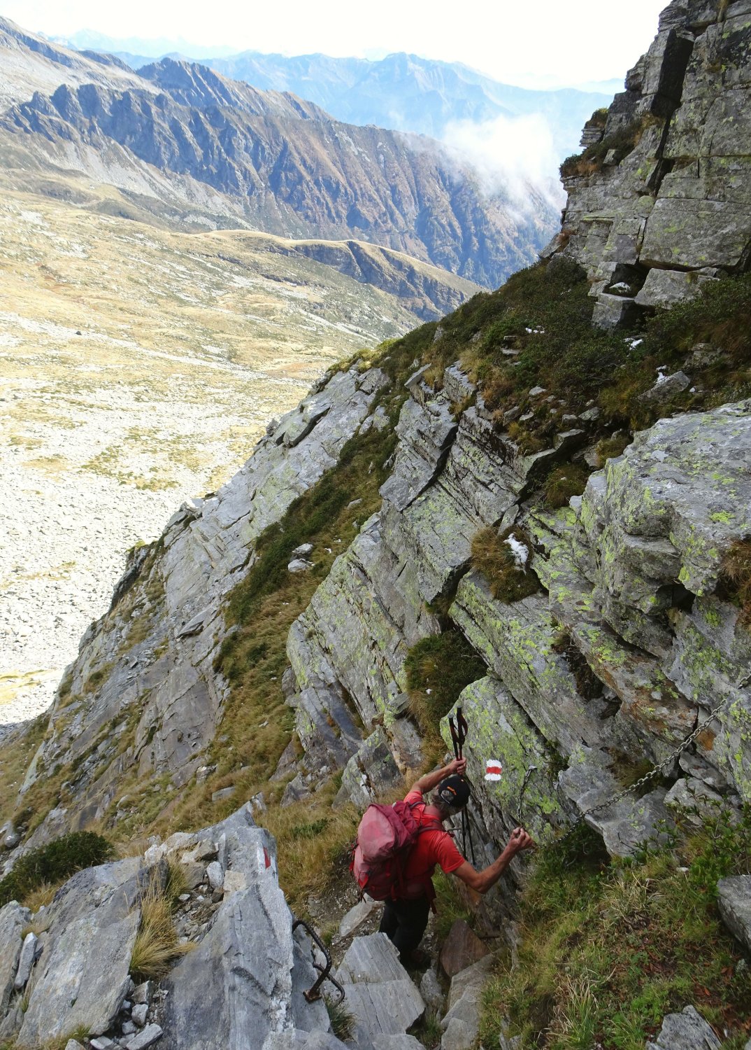 Alles markierte Steige mit kurzen Kraxelstellen am NW-Grat und einer kettengesicherten plattigen Passage in der Ostflanke. Insgesamt wenig ausgesetzt.