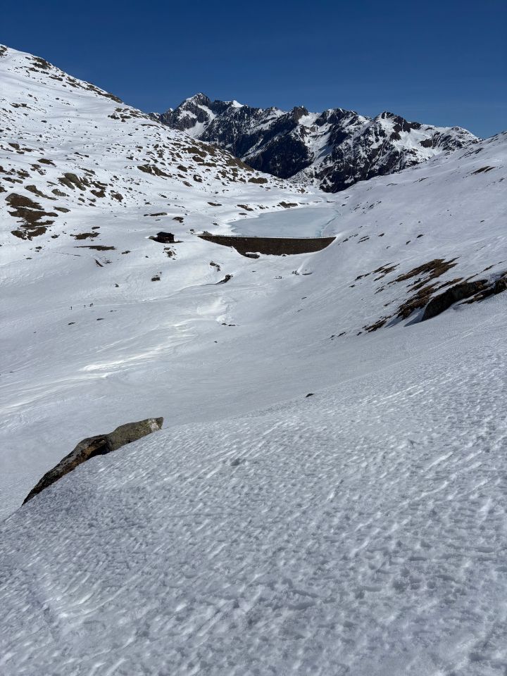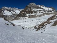 Schnee auf dem Gletscher noch gut ausreichend und am Morgen noch gut gefroren. Die Querung des Hangs vor der Fieschalp war schon kritisch weil der Schnee um 12 Uhr komplett durchgeweicht war.