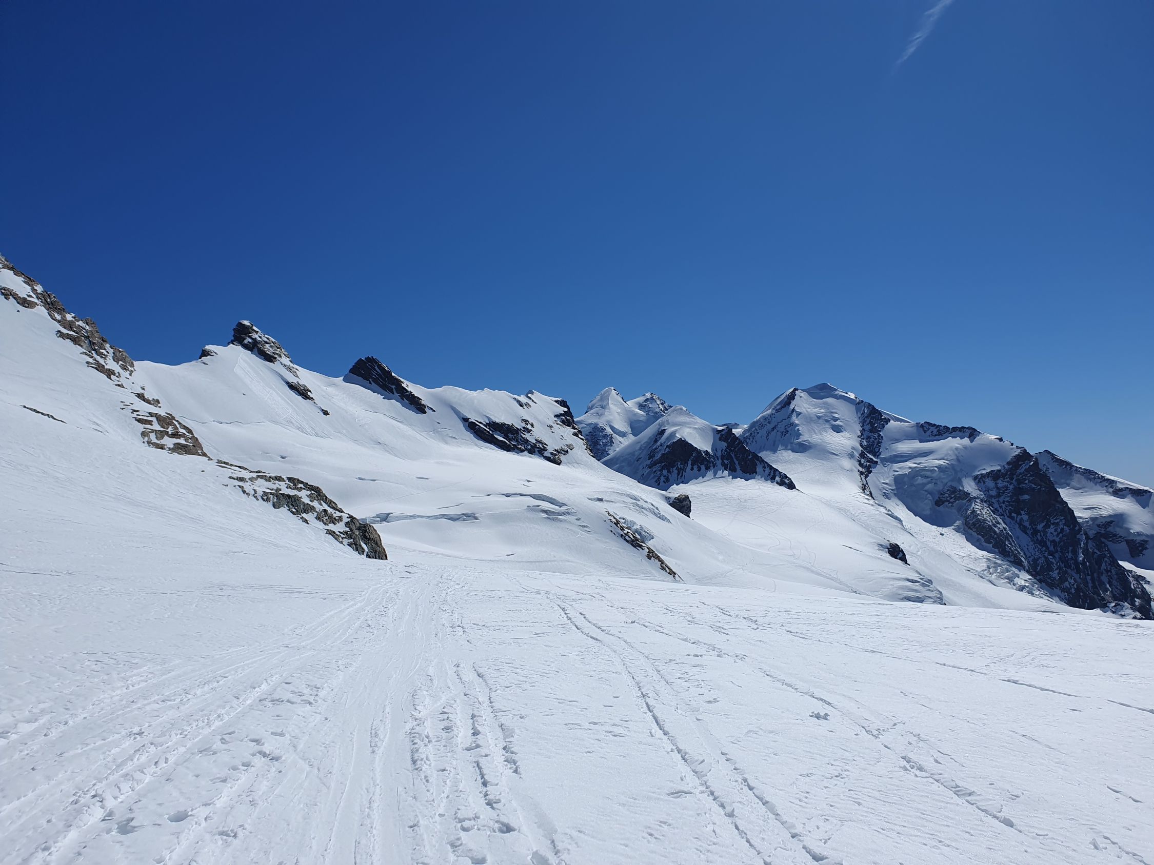 Ich habe vom Castor aus viele Abfahrtsspuren vom Felikjoch nach N gesichtet.
