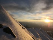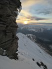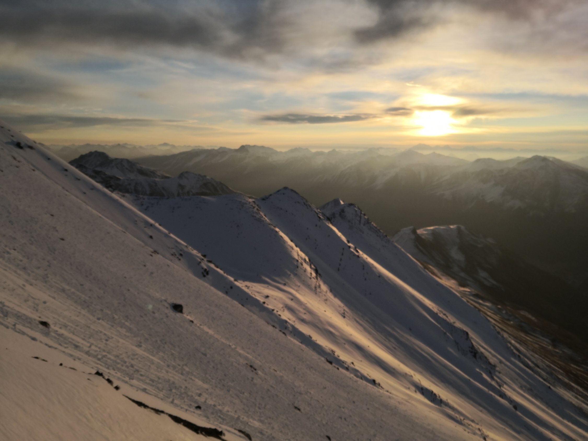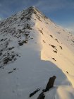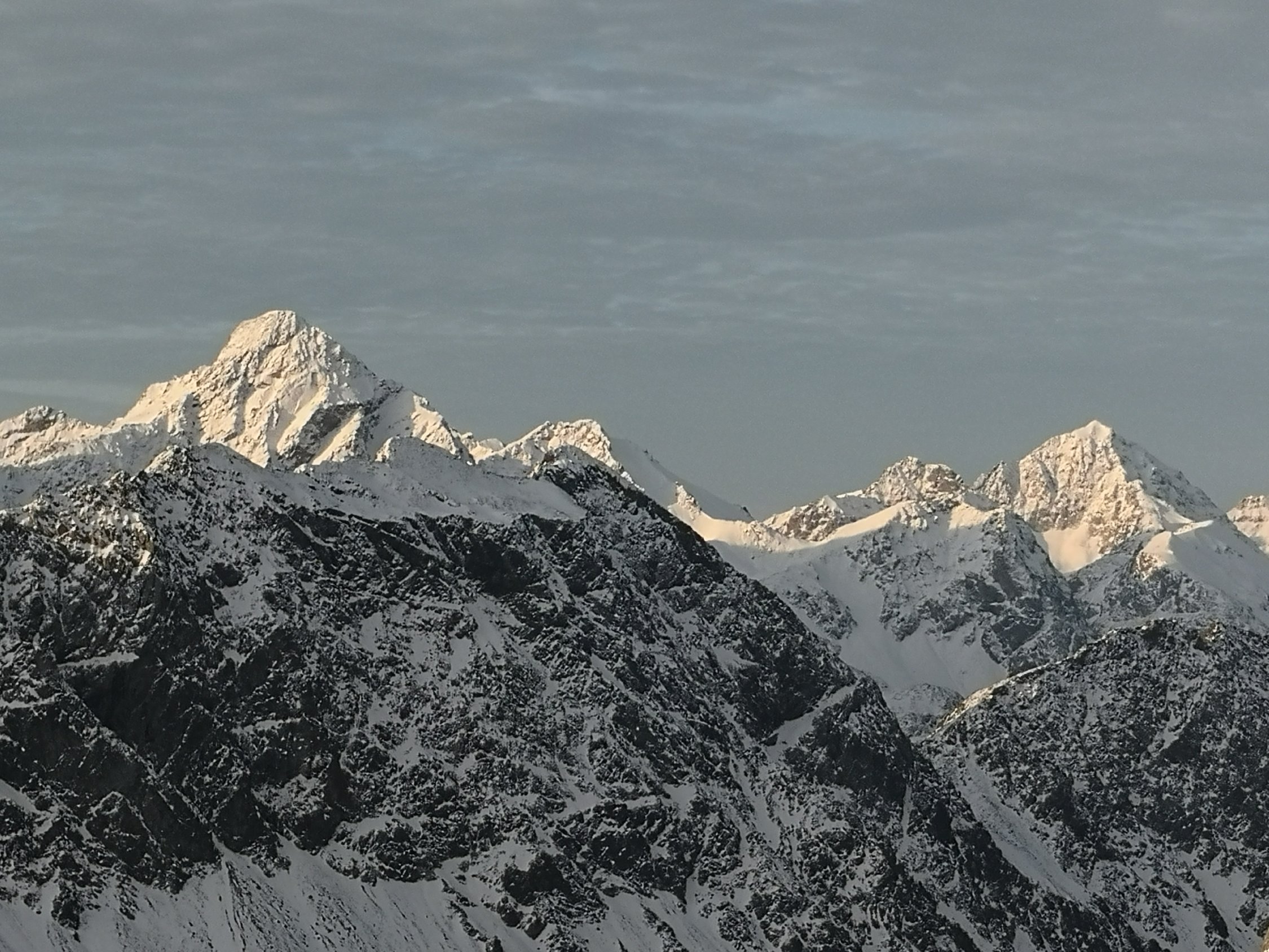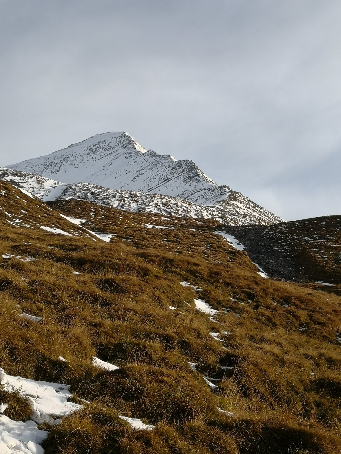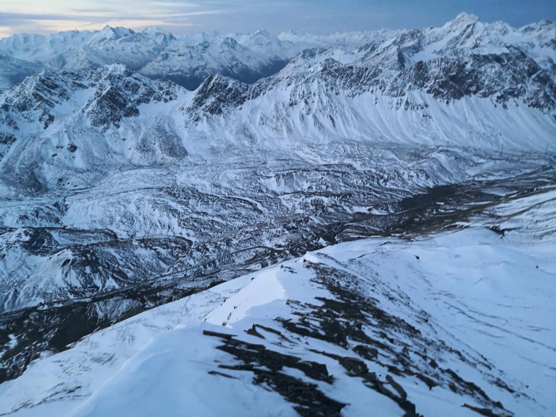 Bim um ca. 05.15 gestartet, wollte den Sonnenaufgang auf dem Gipfel erleben. Zuerst noch ohne Schneekontakt bis ca.2450m, ab diet durchgehend Schnee.. Schade, dass ich die Ski nicht dabei i hatte, wäre heute gegangen, obwohl rechter Deckel vorhanden. Dann über den Südgrat immer weiter hinauf, mehrmals kommt das Gefühl kurz vor dem Gipfel zu sein um dann leider zu bemerken, dass nochmals ein Grataufschwung kommt, irgendwie wollte der Grat bmbicht Enden. Zunehmend mehr Schnee, sehr rutschige Schotter und kurz vordem Gipfel dann Umkehr infolge Sehr hart gefrorener Schneeoberfläche, tja, Steigeisen zu Hause gelassen, ob e fiese for mich Schluss... 50hm unter dem Gipfel. Sicherheit geht vor, Abstieg dann zuerst wieder über den Grat, dann bei ca. 2950m in die Südwestflanke gequert, da dort guter Schnee lag für Abstieg. In knapp 45min wieder runter zur Passstrasse.