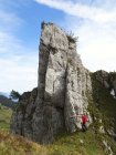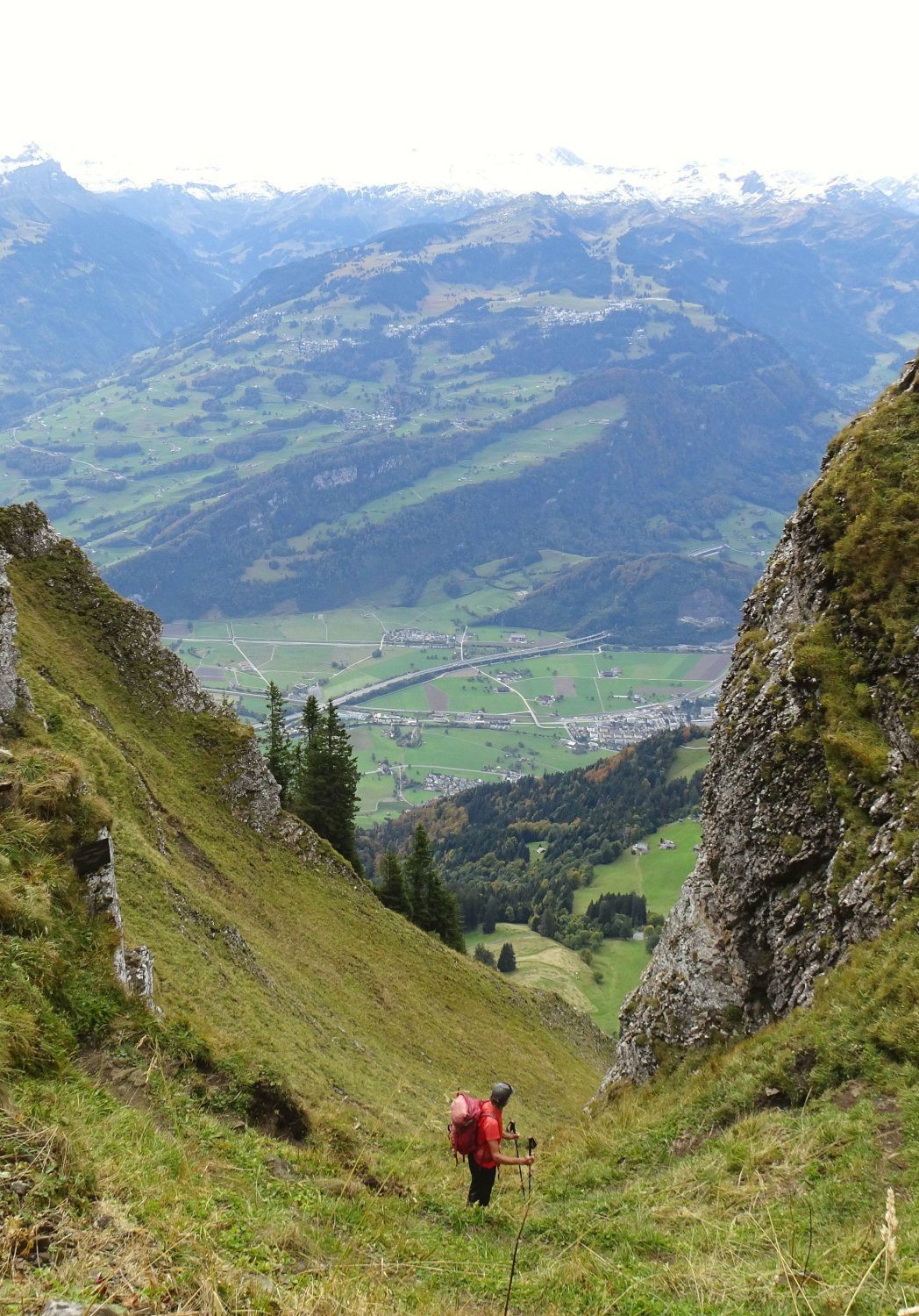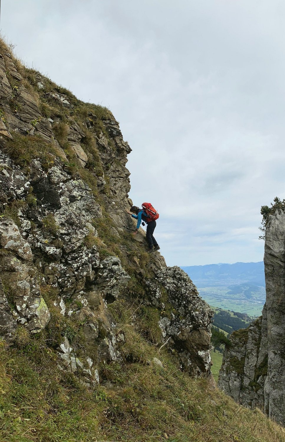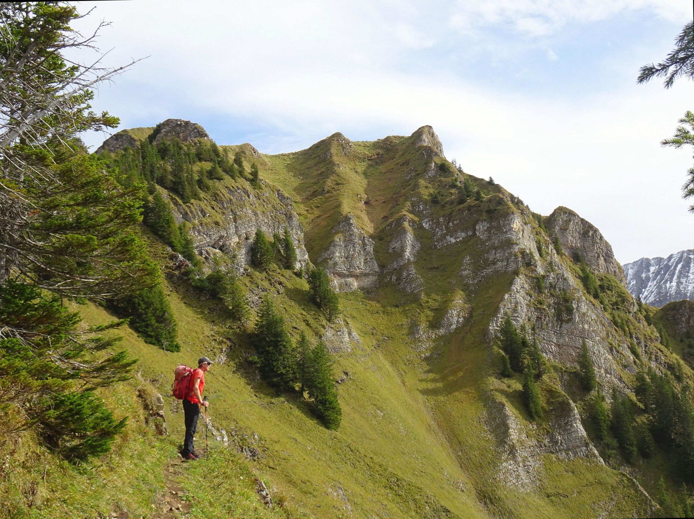 Wir haben an der Nideri noch einen kleinen Abstecher auf den westlichen Grat gemacht, der unten deutliche Trittspuren aufweist und interessant aussah. Ist jedoch bei Nässe in rutschigem T5-Gelände definitiv nicht zu empfehlen. Zudem der vermeintliche Gipfel dann nur eine Gratkuppe darstellt.