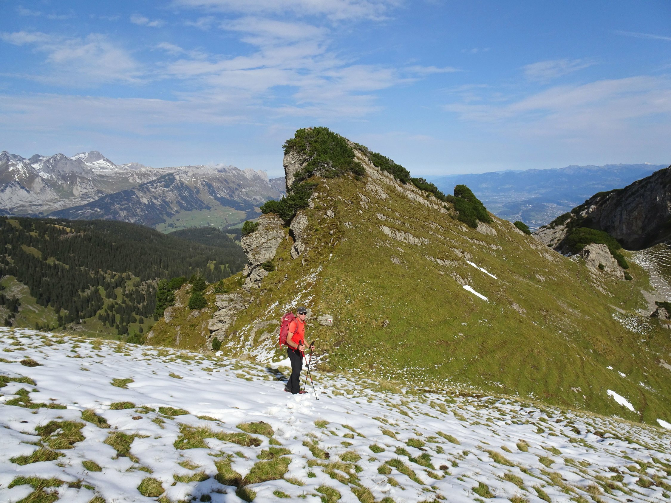 Im Aufstieg über die Nideri kleine Schneereste, die nicht weiter stören. Der Steig durch die steilen Südwesthänge zum Gipfel war weitgehend trocken und gut begehbar. Schmaler Weg, Trittsicherheit erforderlich.