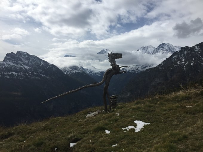 Weiterweg: Vom Passo Possette über Alpen Camoscella und Vallascia über die Grenze, dann via Alpjen nach Alte Kaserne. Die Fahrstrasse ist durch das kürzliche Unwetter an mehreren Stellen zerstört und nicht befahrbar. Zu Fuss jedoch problemlos.