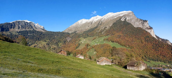 Schöne Aussicht am Gipfel auf die Kanisfluh und die Zitterklapfen-Gruppe und den Widderstein.