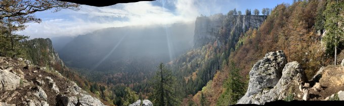 Der Fussweg Auf/Abstieg und Abriss Kante am Creux du Van sind ziemlich seifig feucht und rutschig (gutes Schuhwerk, eventuell Stöck).