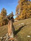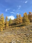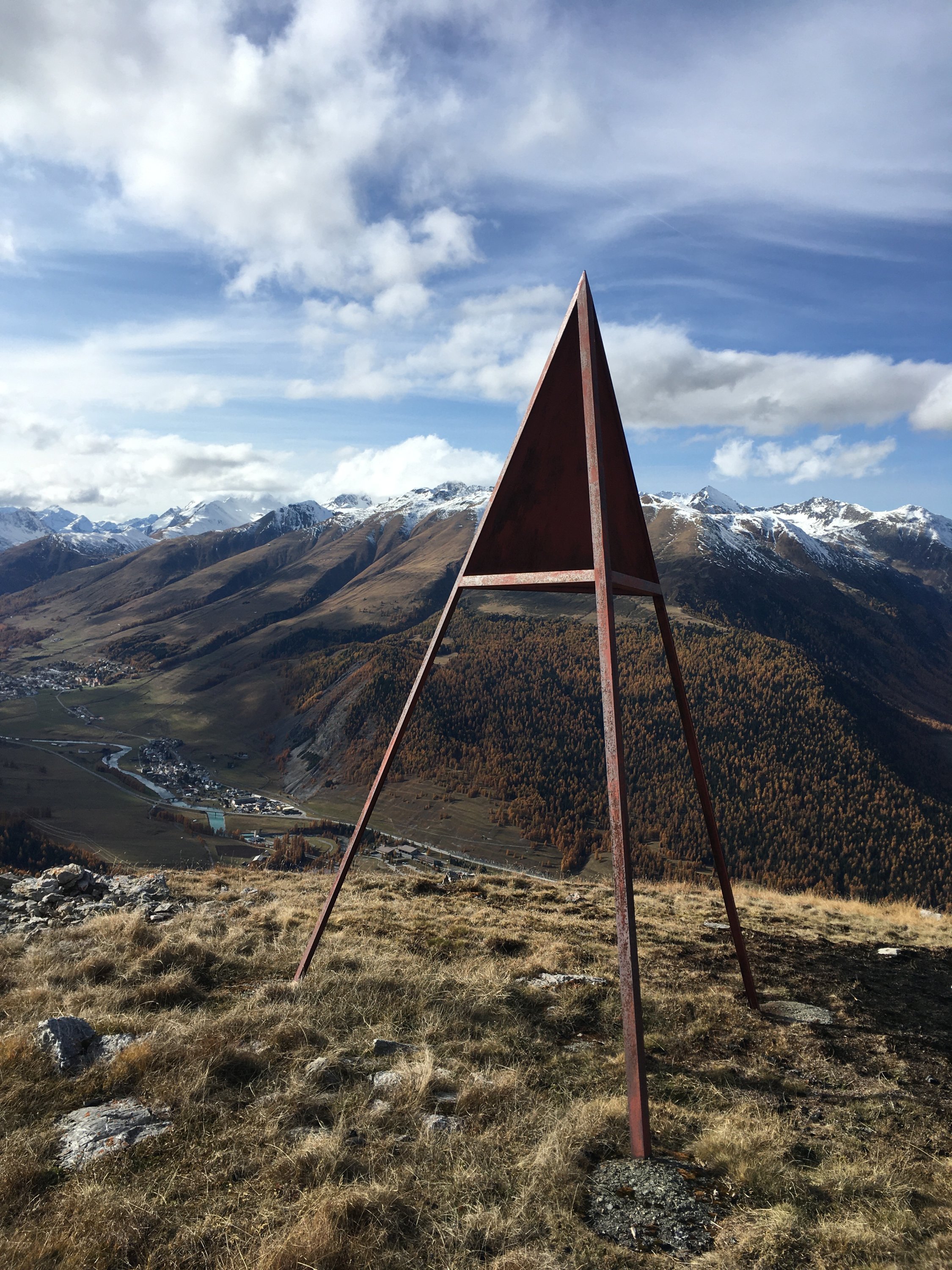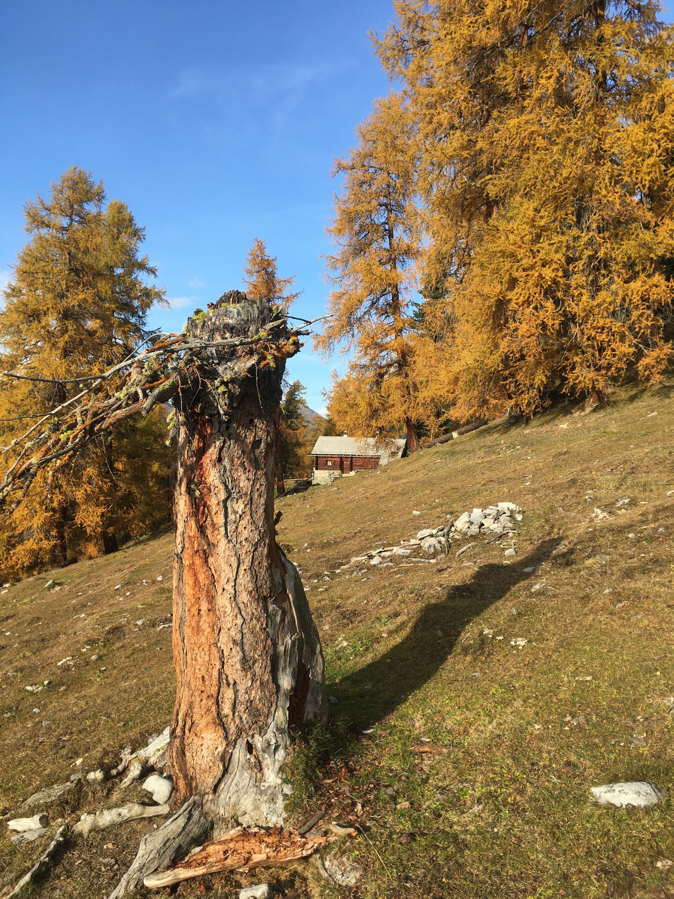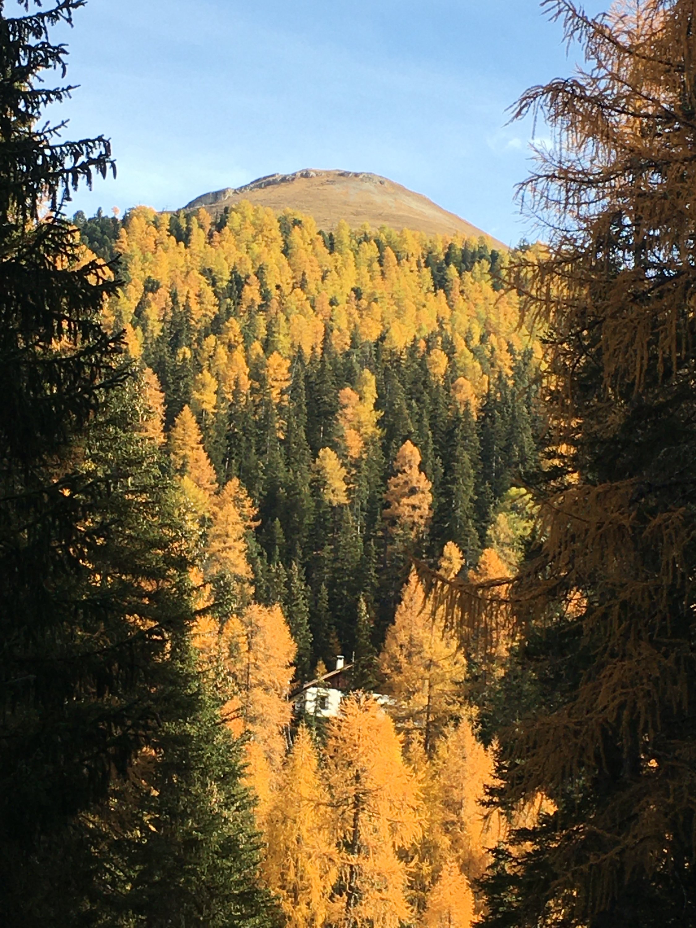 Start um 11 Uhr Parkplatz Prasüras, war fast voll, 4 Grad, windstill. In einer Stunde auf Forststrasse zur Alp Blais. Weiter weglos, zuerst durch schönen gelben Lärchenwald und weiter die steile Westflanke hoch direkt in eine Lücke in der Felswand und weiter zum schönen Aussichtsgipfel. Abstieg zuerst Richtung Norden um die Felswand herum (Steinmännchen) und nachher die Westflanke hinunter zur Alp und weiter zum Parkplatz.