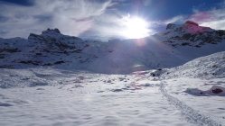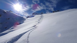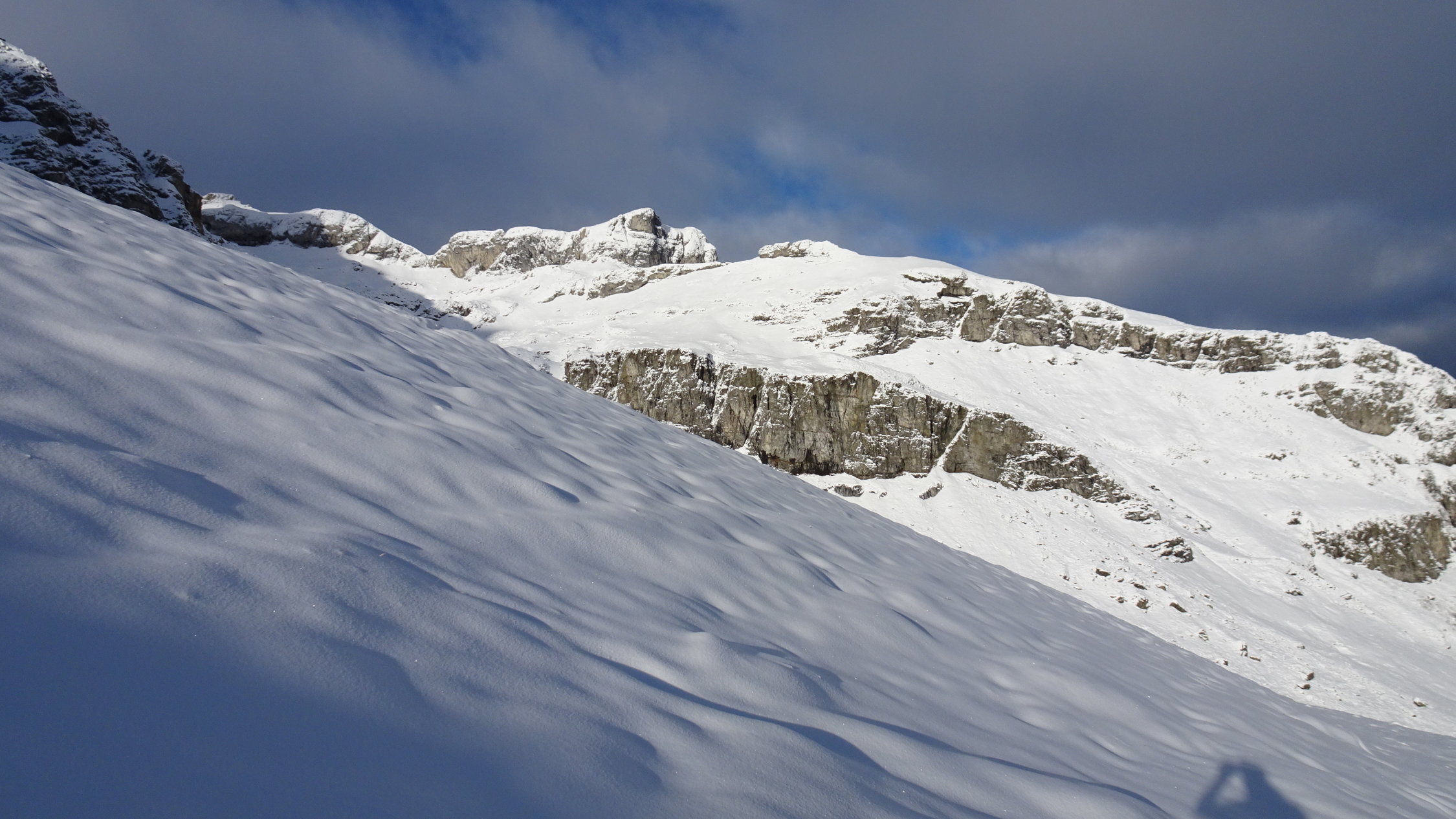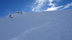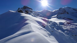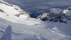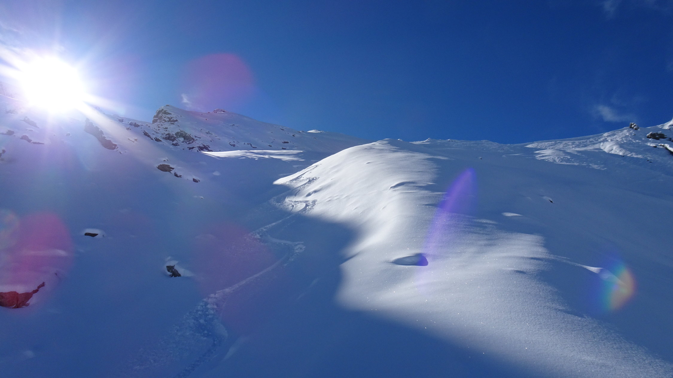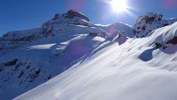 Die Sonne zeigte sich auch immer besser aber der Hohtürlihang hat je niedriger der Sonnenstand bald nur noch unten und auf dem Gipfelgrat ein bisschen Sonne
