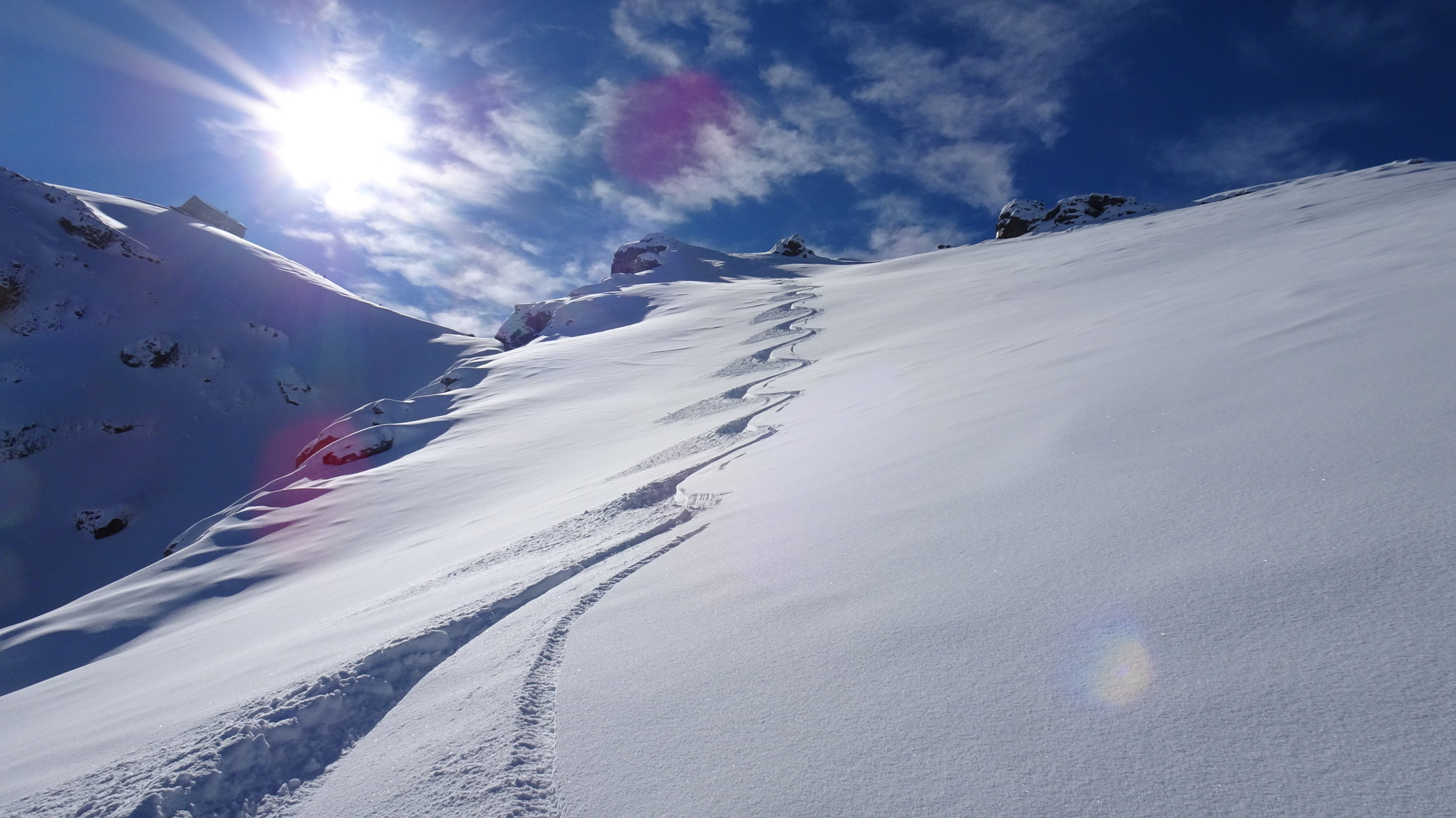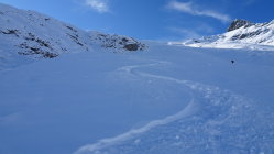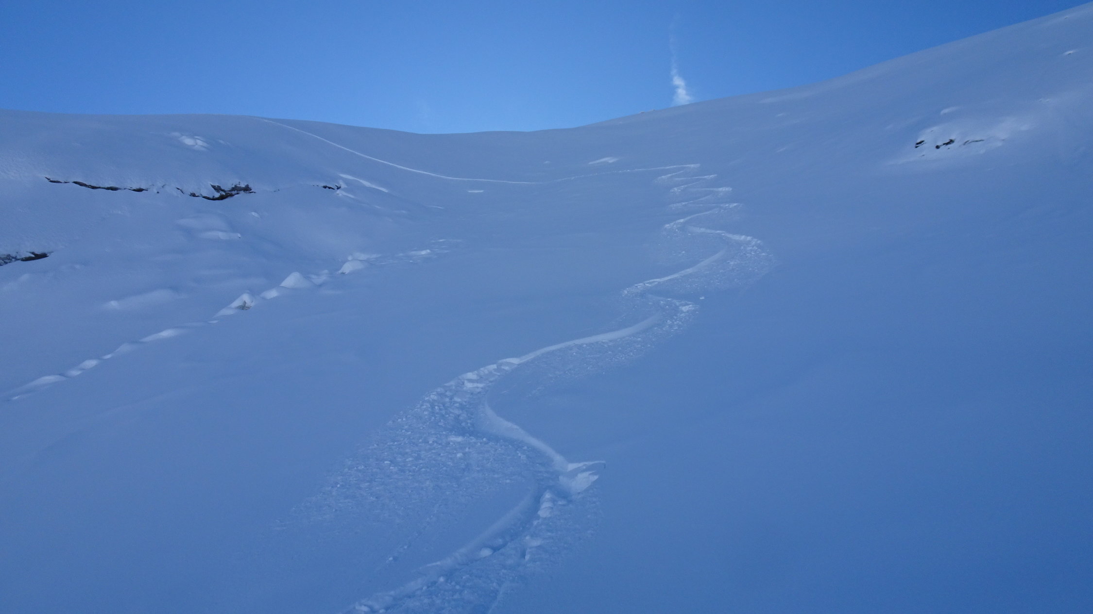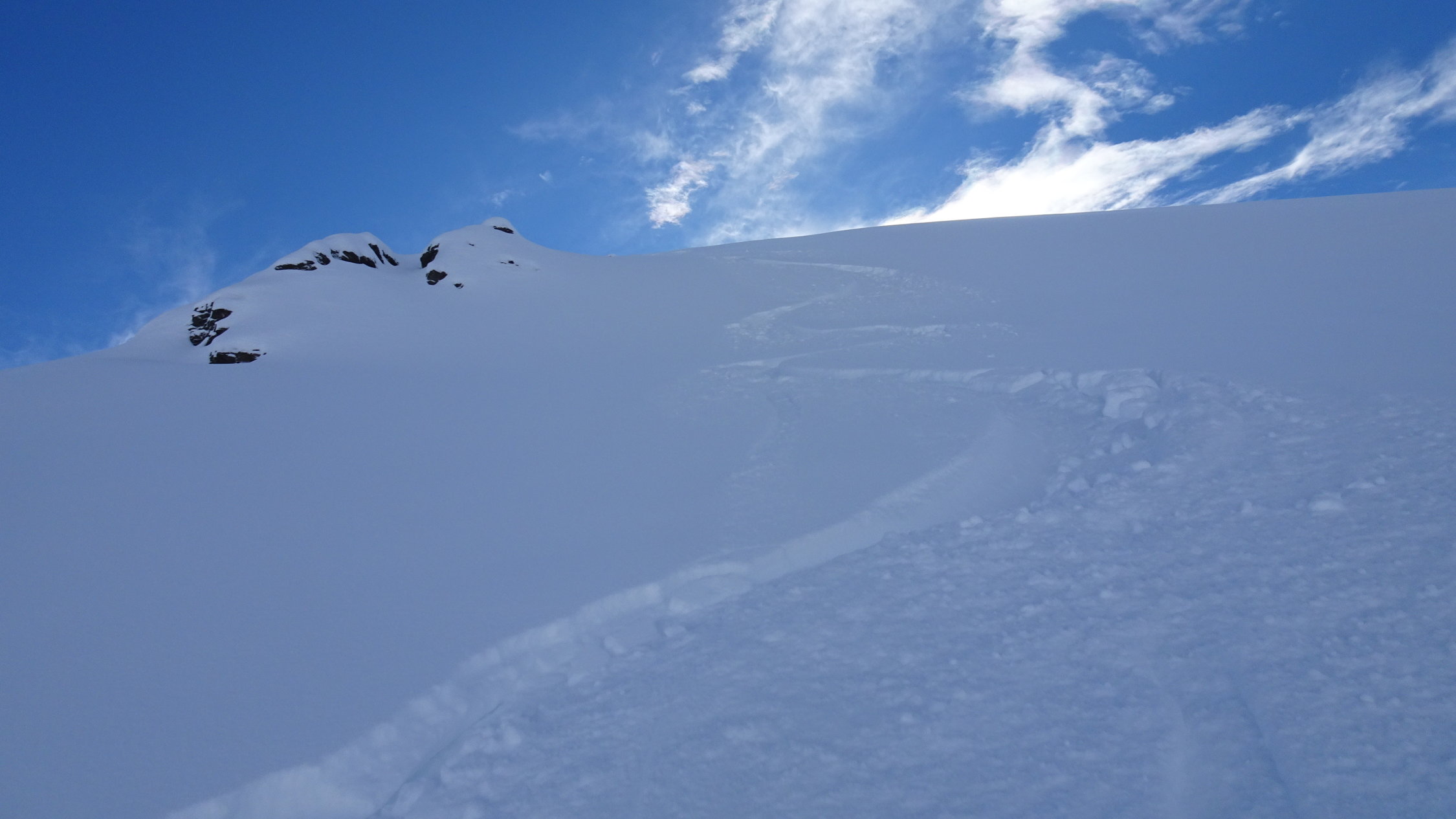 Oberhalb 2100m bis Gipfel 20-40cm mit einer harten Unterlage Ausgezeichnet und bei guter Routenwahl ohne Steinkontakt.